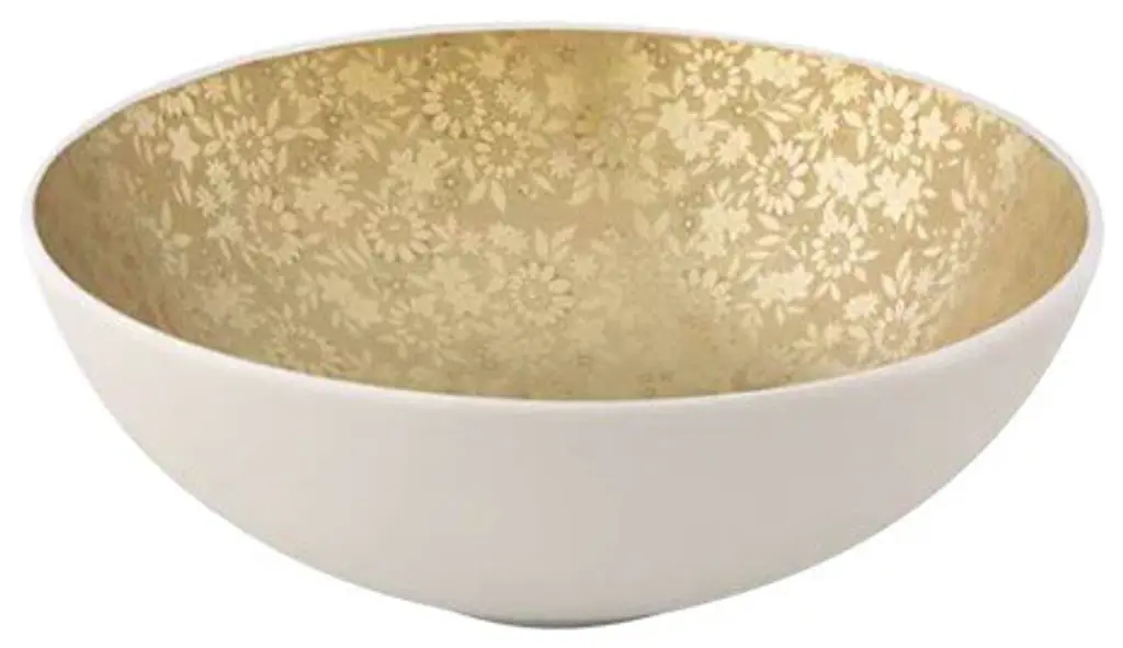 Simply posh with a valiant edge a Damascene. An artesanal technique with thousand year-old tradition which consists of applying fine gold threads to metal pieces to later wok the forms and reliefs. The Sicilia Natural Gold Tevety is ideal for spaces with a dual reading: minimalist and natural at first glance, and complex upon a second look.Measurement: 15.74" in D x 5.90" in HDetails: Porcelain and Metal Design and Manufactured in SpainThis item includes only the sink