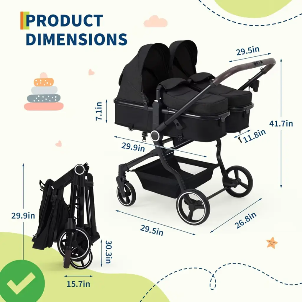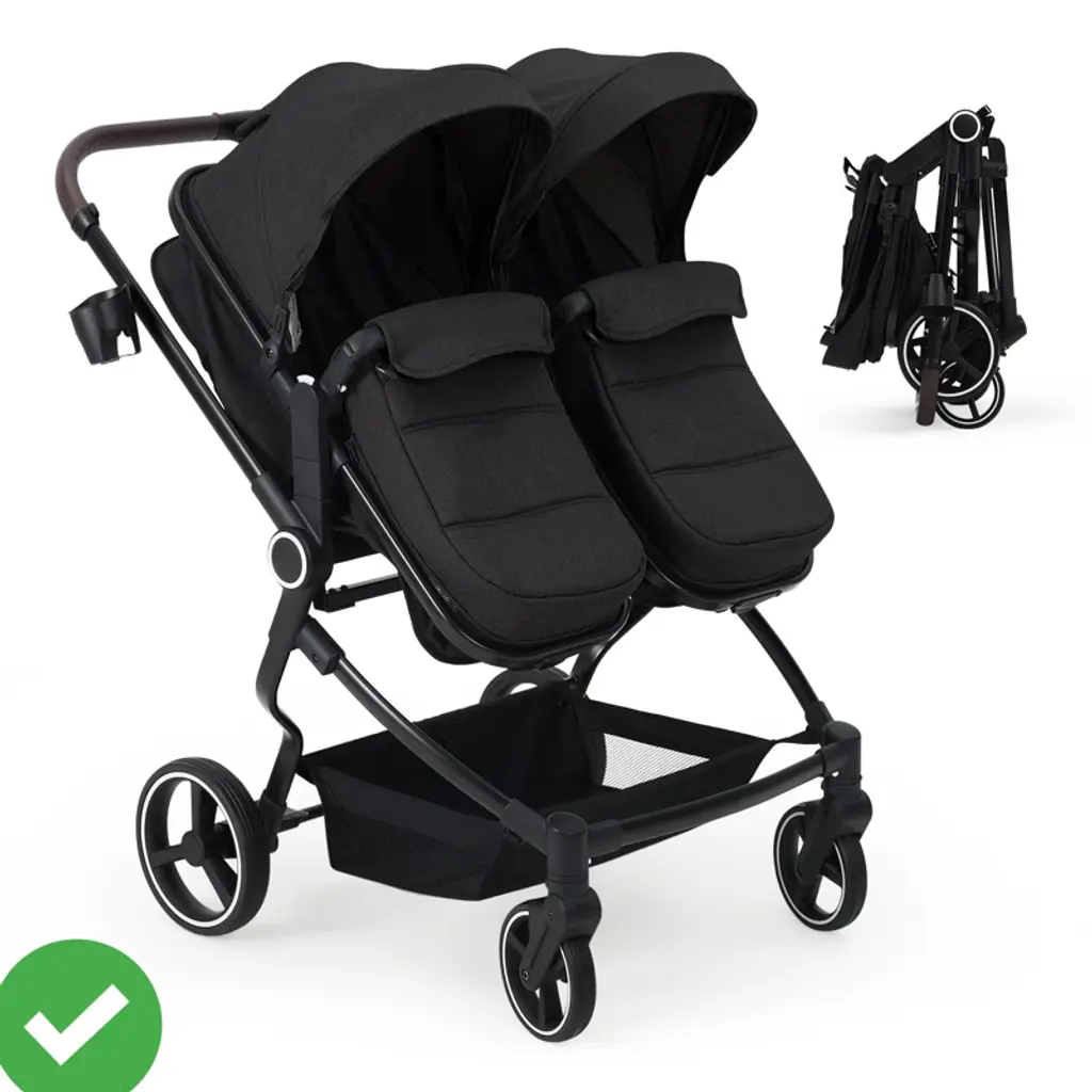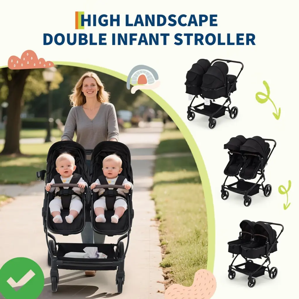 Side By Side Double Stroller For Twins Lightweight Compact Foldable Baby Travel Stroller With High Landscape Seat