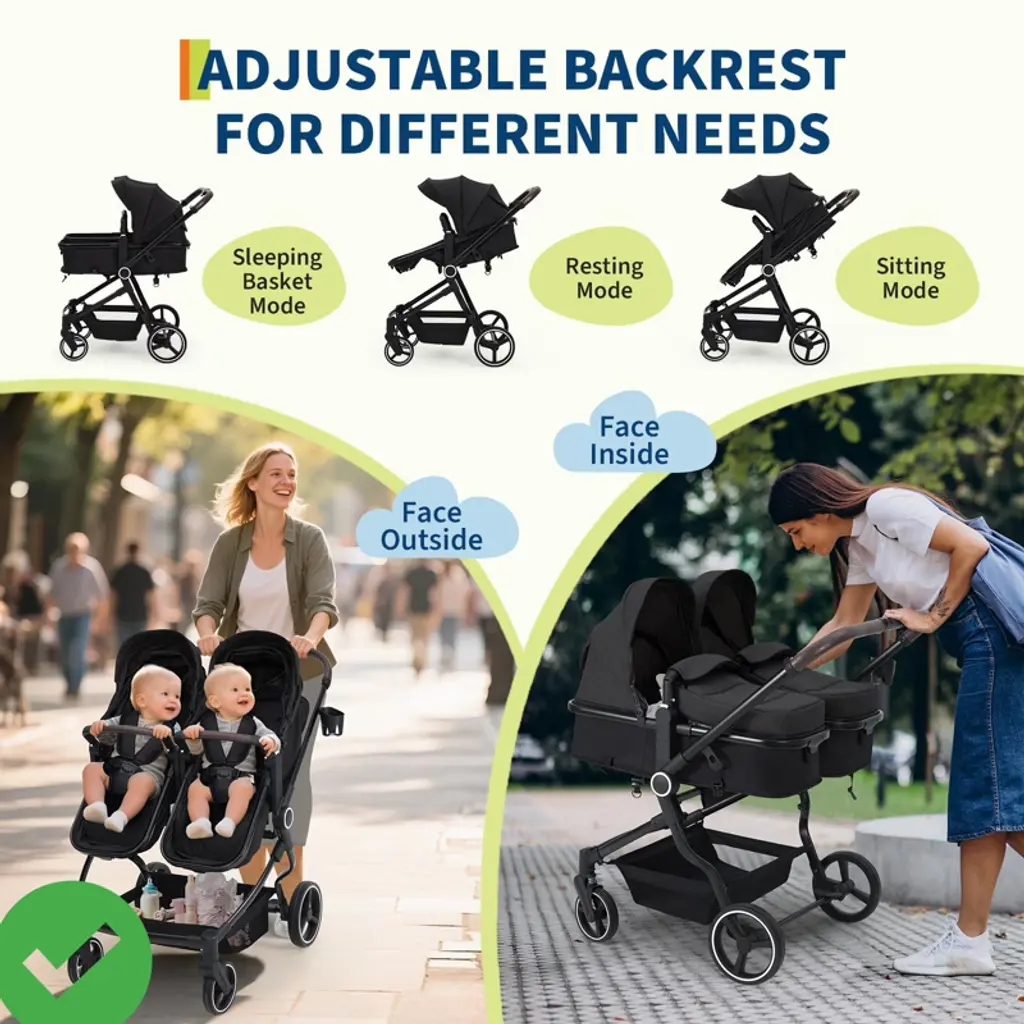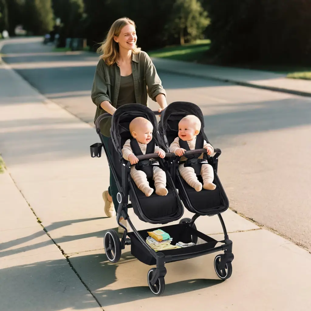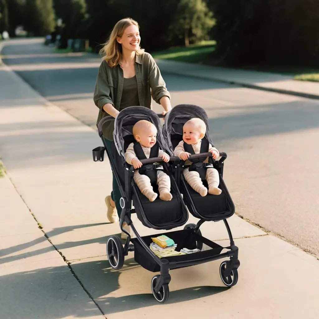 Side By Side Double Stroller For Twins Lightweight Compact Foldable Baby Travel Stroller With High Landscape Seat