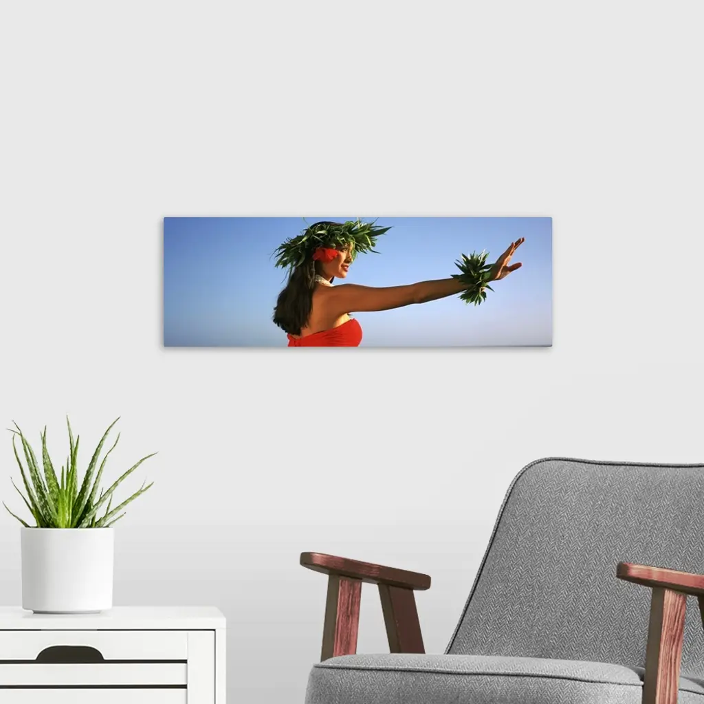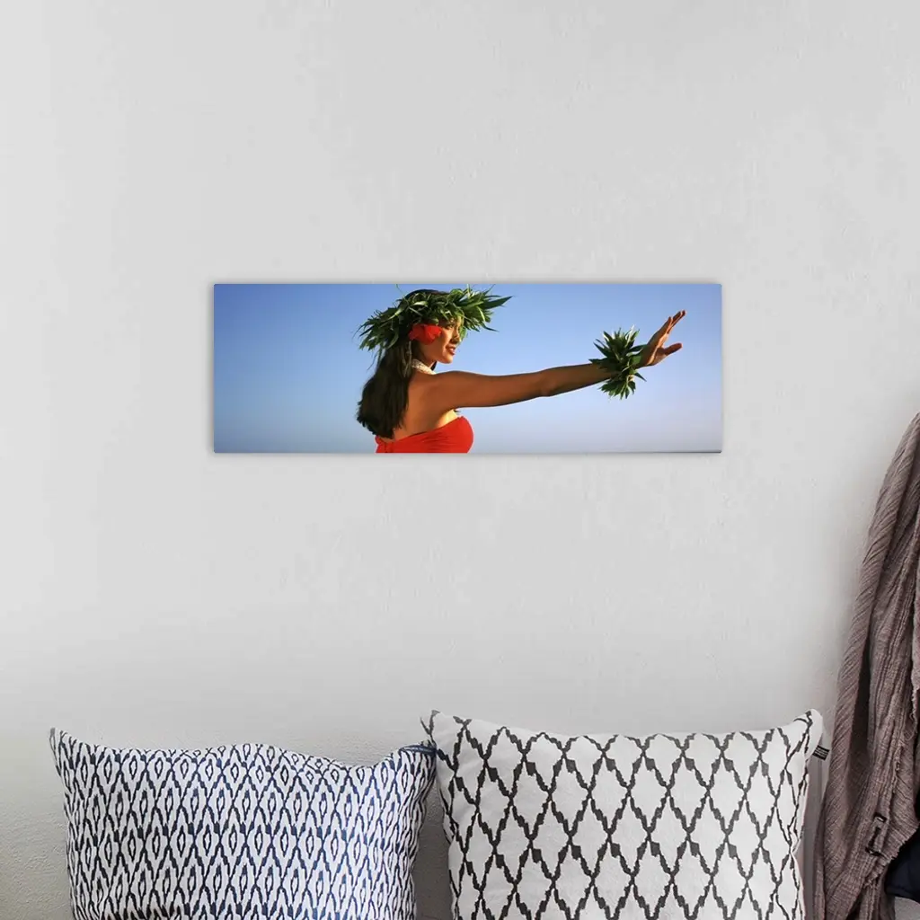 Side profile of a Hula dancer dancing, Hawaii wall art for home and office decor. Discover canvas art prints, photos, mural, big canvas art and framed wall art in GreatBigCanvas.com's varied collections.