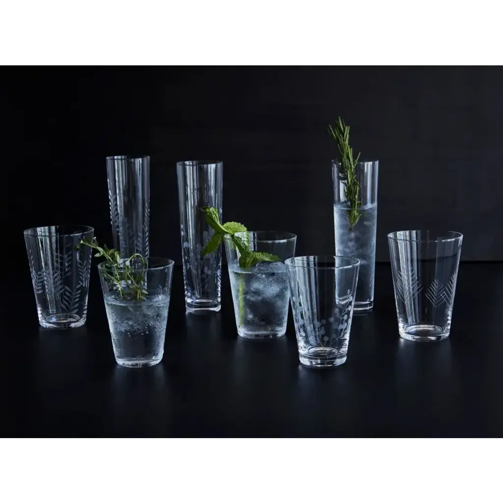 Inspired by nature, beautiful botanical designs are engraved into super thin soda glass. Offered in three sizes and sold in a mixed set, the Sienna glasses have a weightless and timeless elegance. Each set of six glasses comes with two glasses in each of the three botanical patterns.