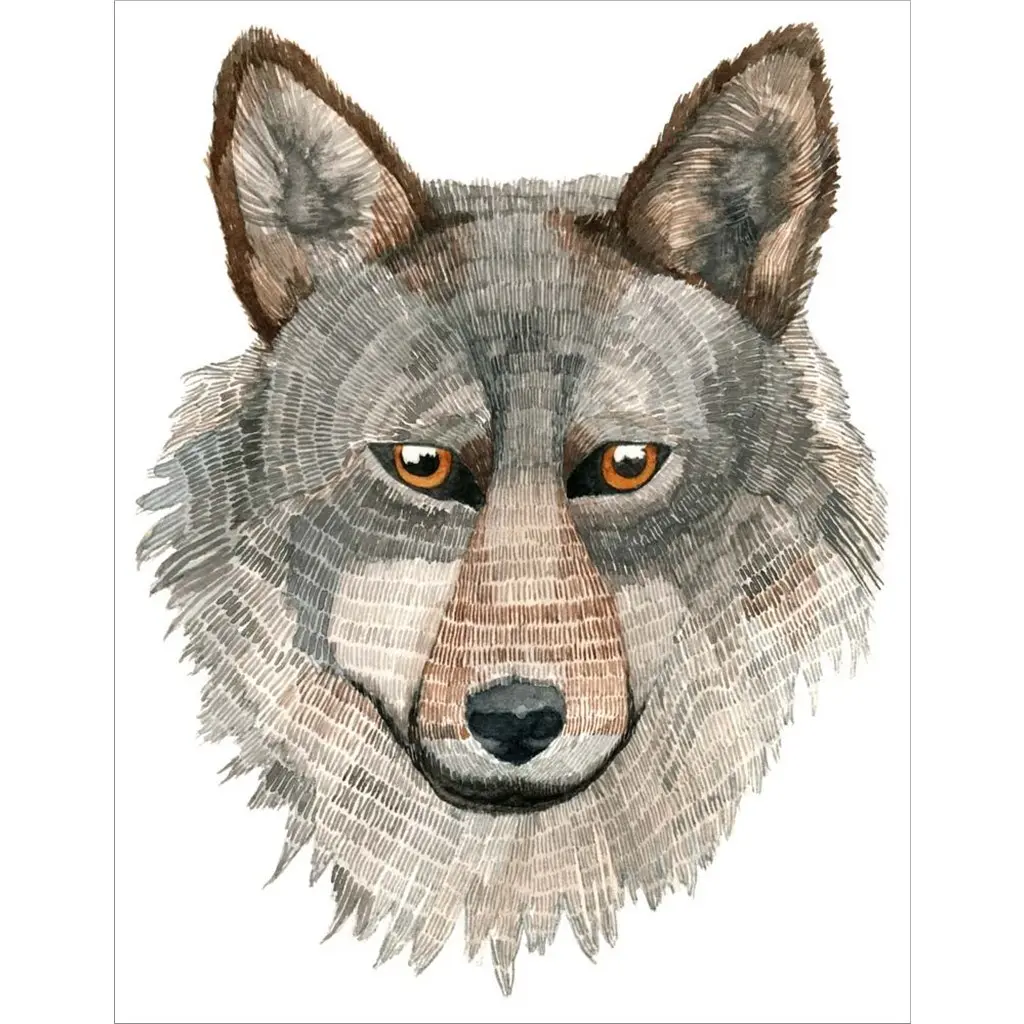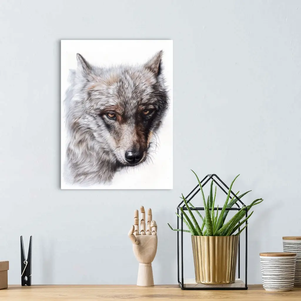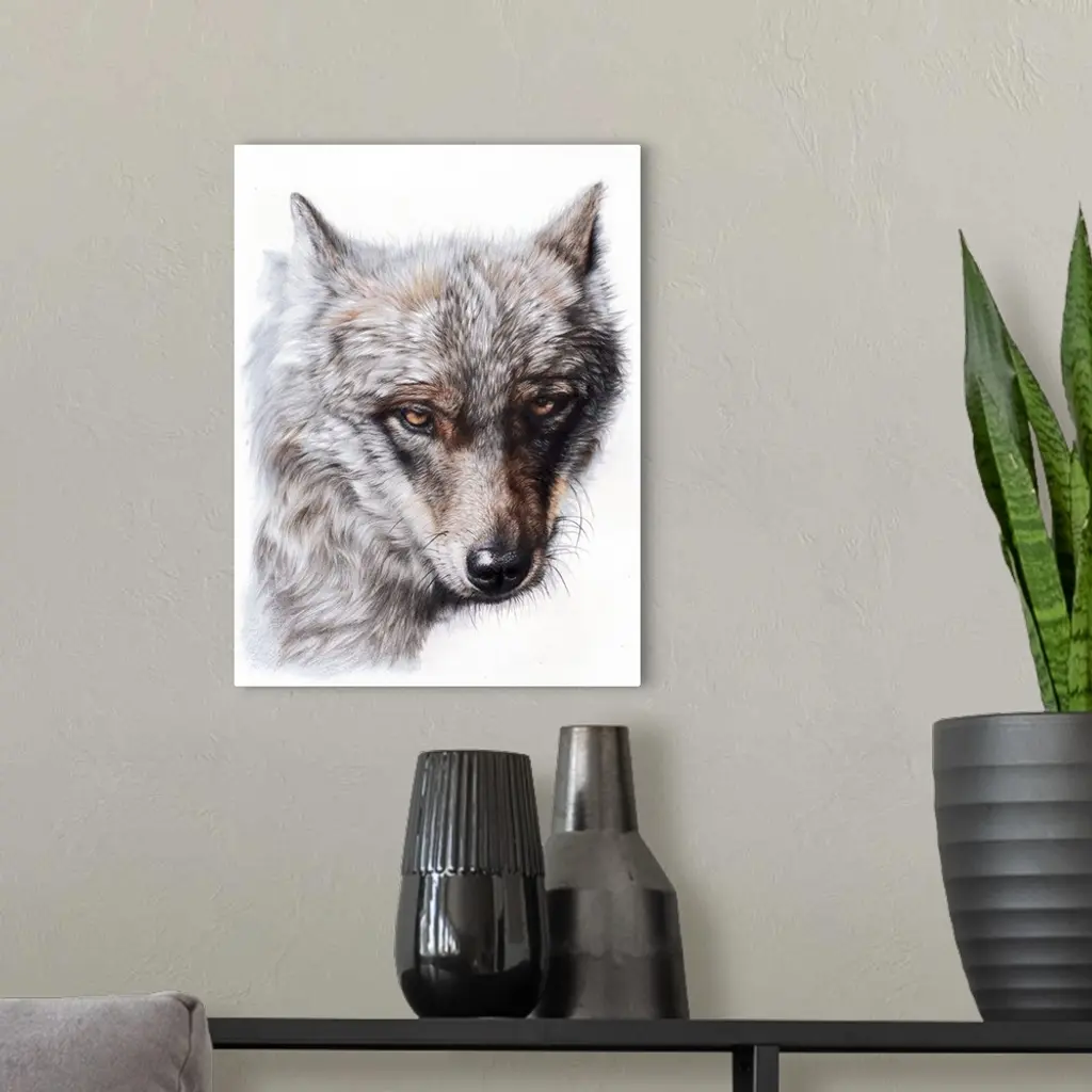 'Sierra Spirit' is a close up portrait of a beautiful Iberian wolf created with colored pencils on Arches cold pressed watercolor paper.