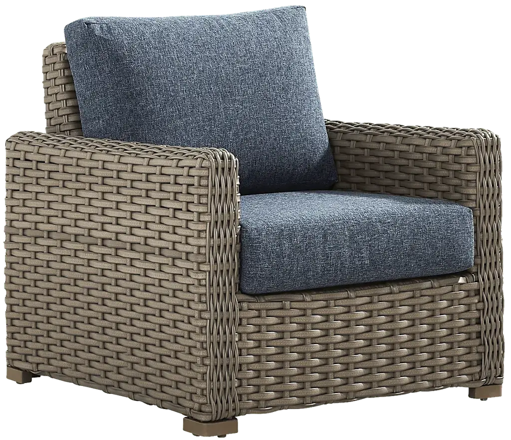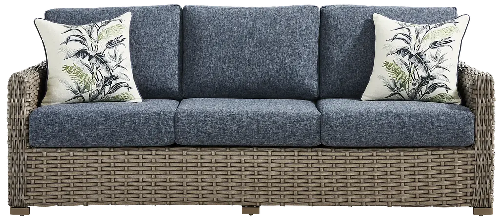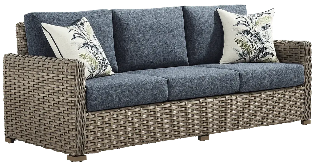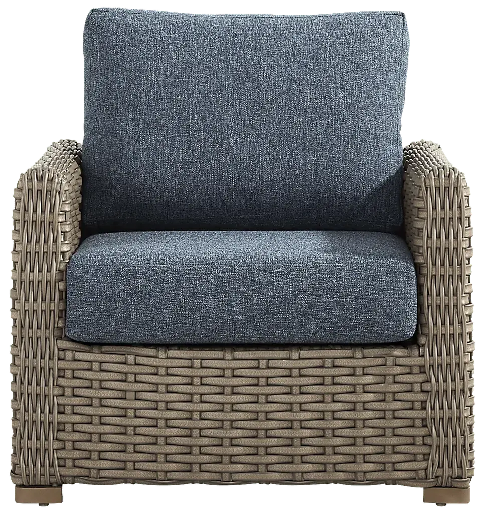 Make any cool evening cozy with the Siesta Key seating set. A sofa and two club chairs are constructed from large weave all-weather wicker in a driftwood color over a weather-resistant powder coated aluminum frame for a lasting, casual tropical look. Ink colored outdoor cushions are UV resistant and sturdy, providing exceptional comfort.