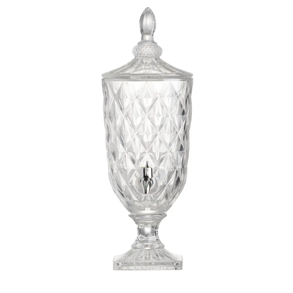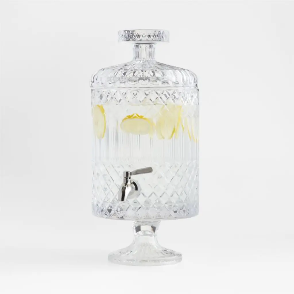 Give the gift of handsome bar staples that look like heirloom classics. Molded with diamond crosshatches that resemble cut crystal, our clear glass Hatch drink dispenser and rocks glasses sparkle on a buffet or bar cart. The dispenser stands high on a pedestal foot to allow room for glasses, while the stainless steel-and-silicone spigot supplies a dripless pour. The lid resembles a stoppered decanter but lifts off easily for filling with your favorite punch or mixed cocktail for a crowd. Eight of our faceted double Old-Fashioned glasses offer a timeless, sophisticated look and clean up easily in the dishwasher when cocktail hour is complete.