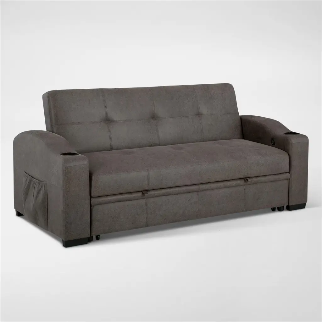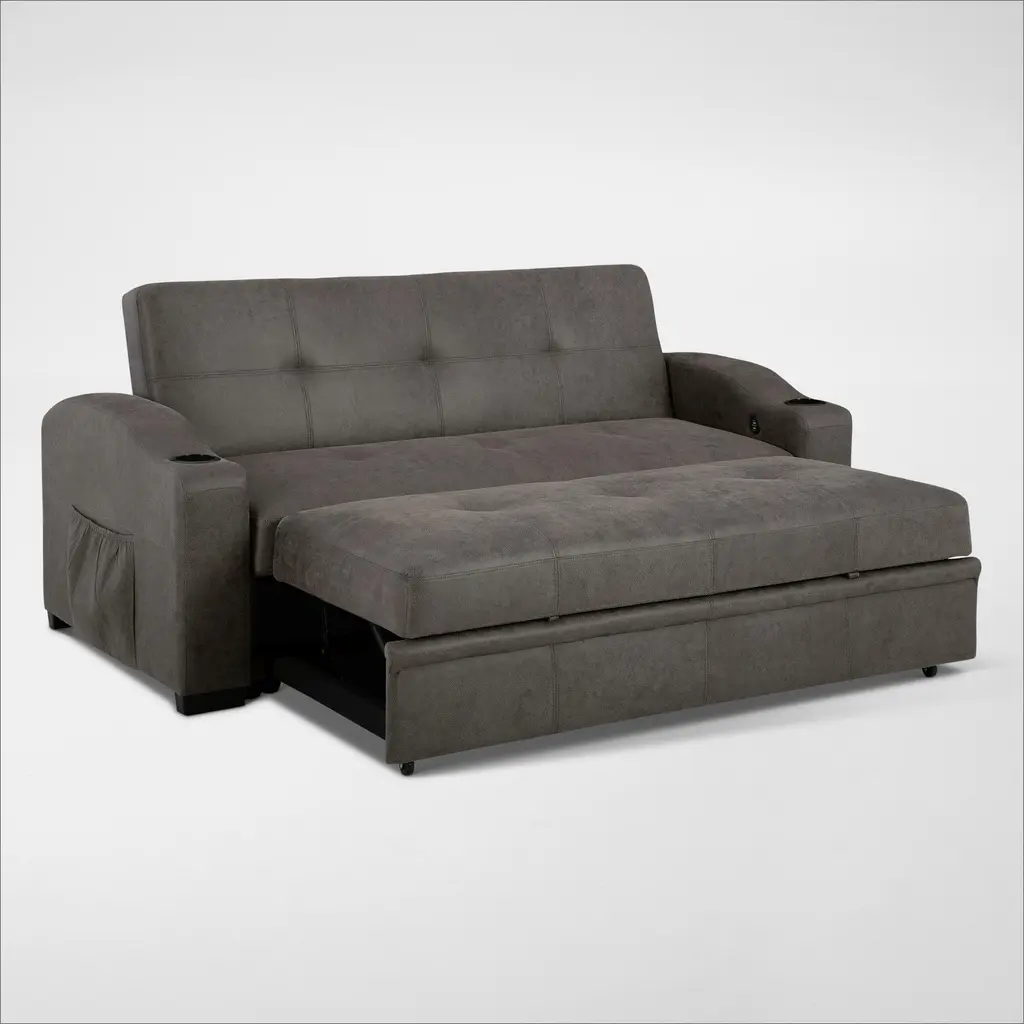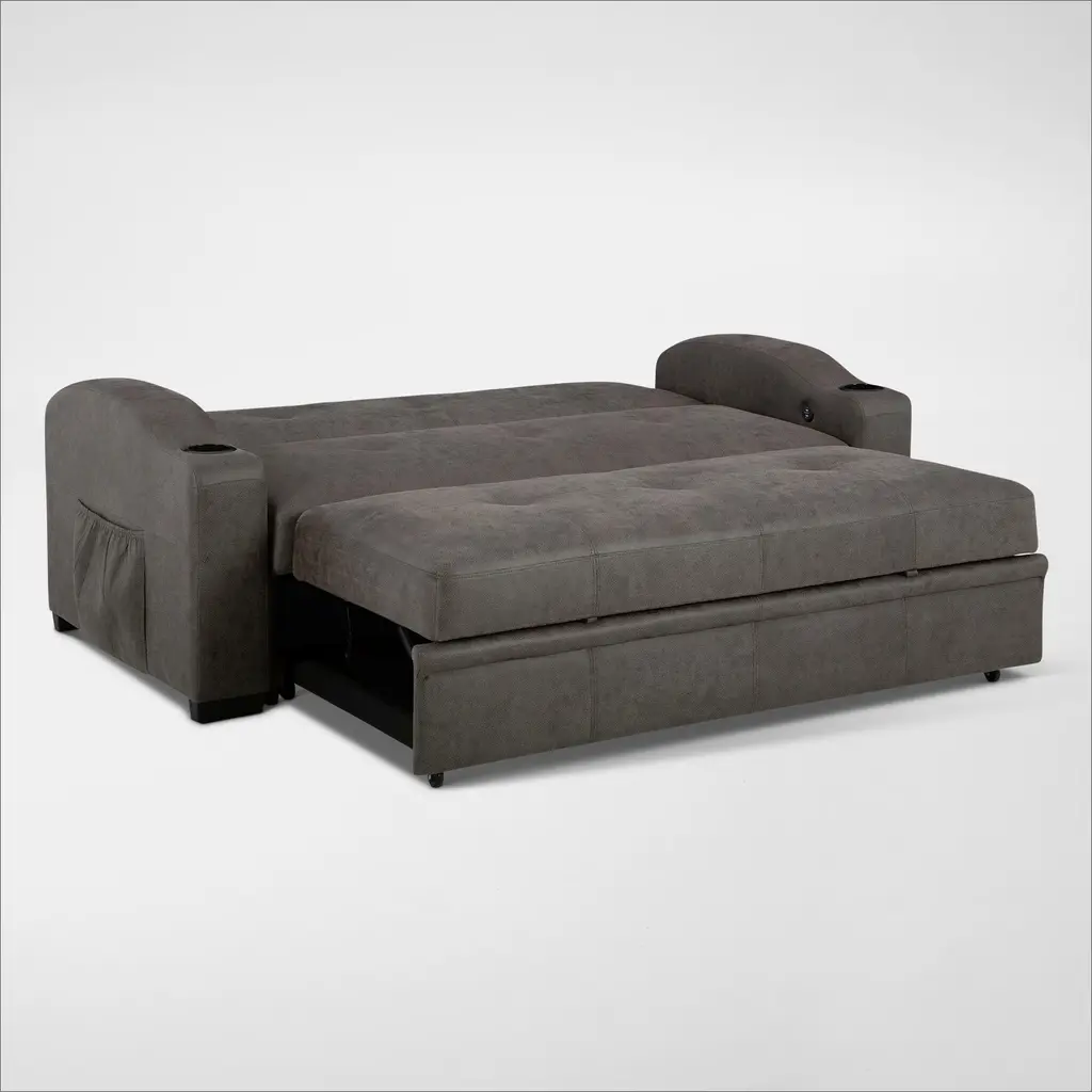 The Hermosa Pop-Up Sleeper is a small-space essential with big-time versatility. Wrapped in gunmetal gray faux leather, it effortlessly transitions from stylish seating to a roomy sleep space.