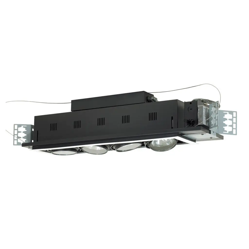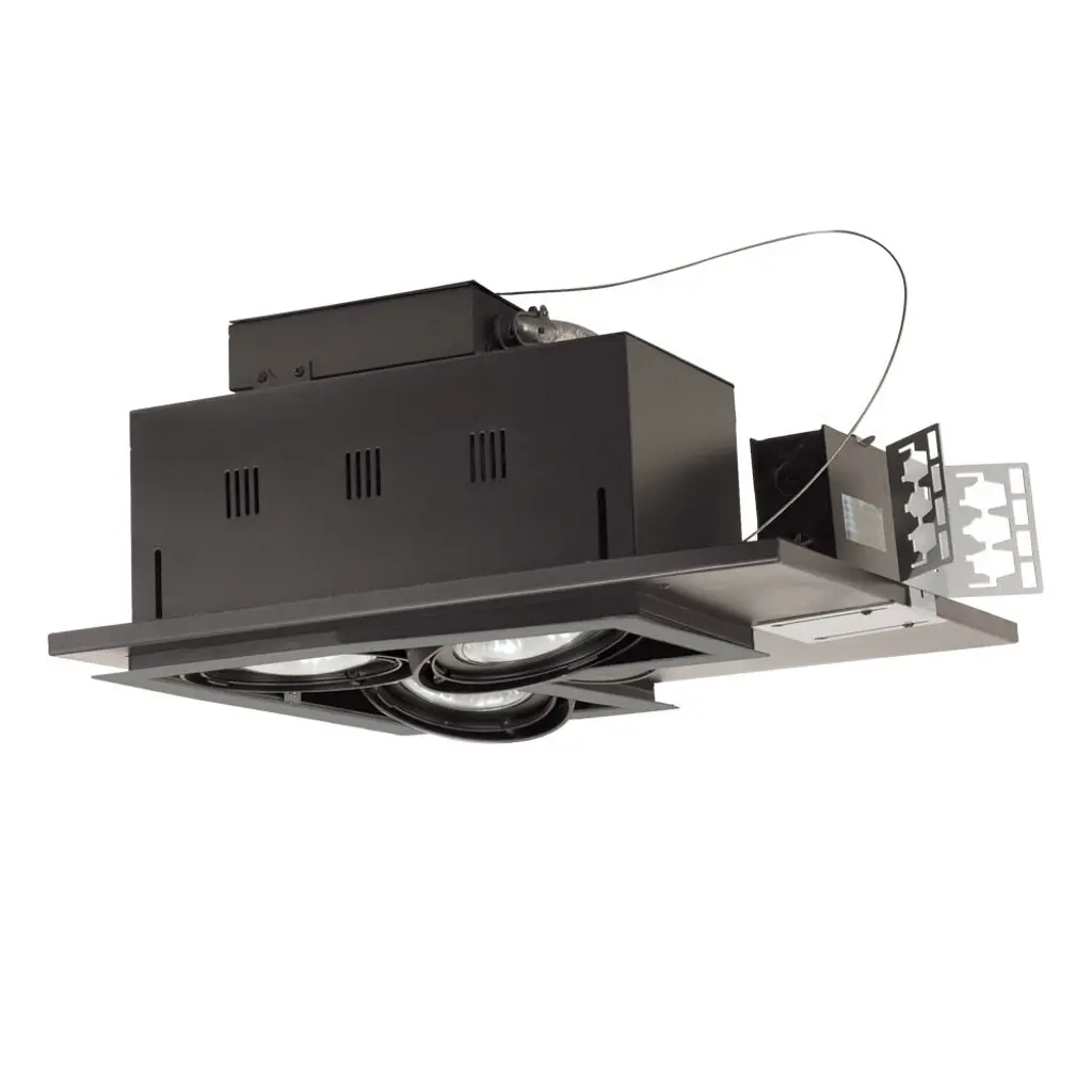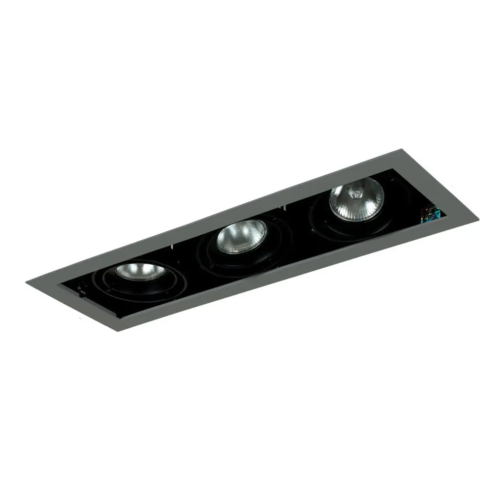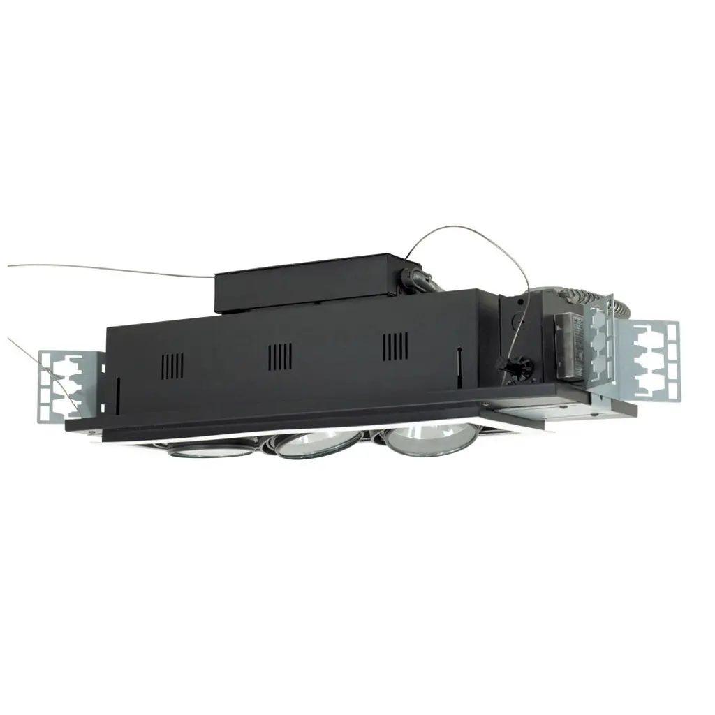 JESCO Three-Light Double Gimbal Linear Recessed Line Voltage Fixture. Bulb Base :(3) PAR20 120V 50W Lamp is not included. Dry Location. Hardwire. UL Listed.