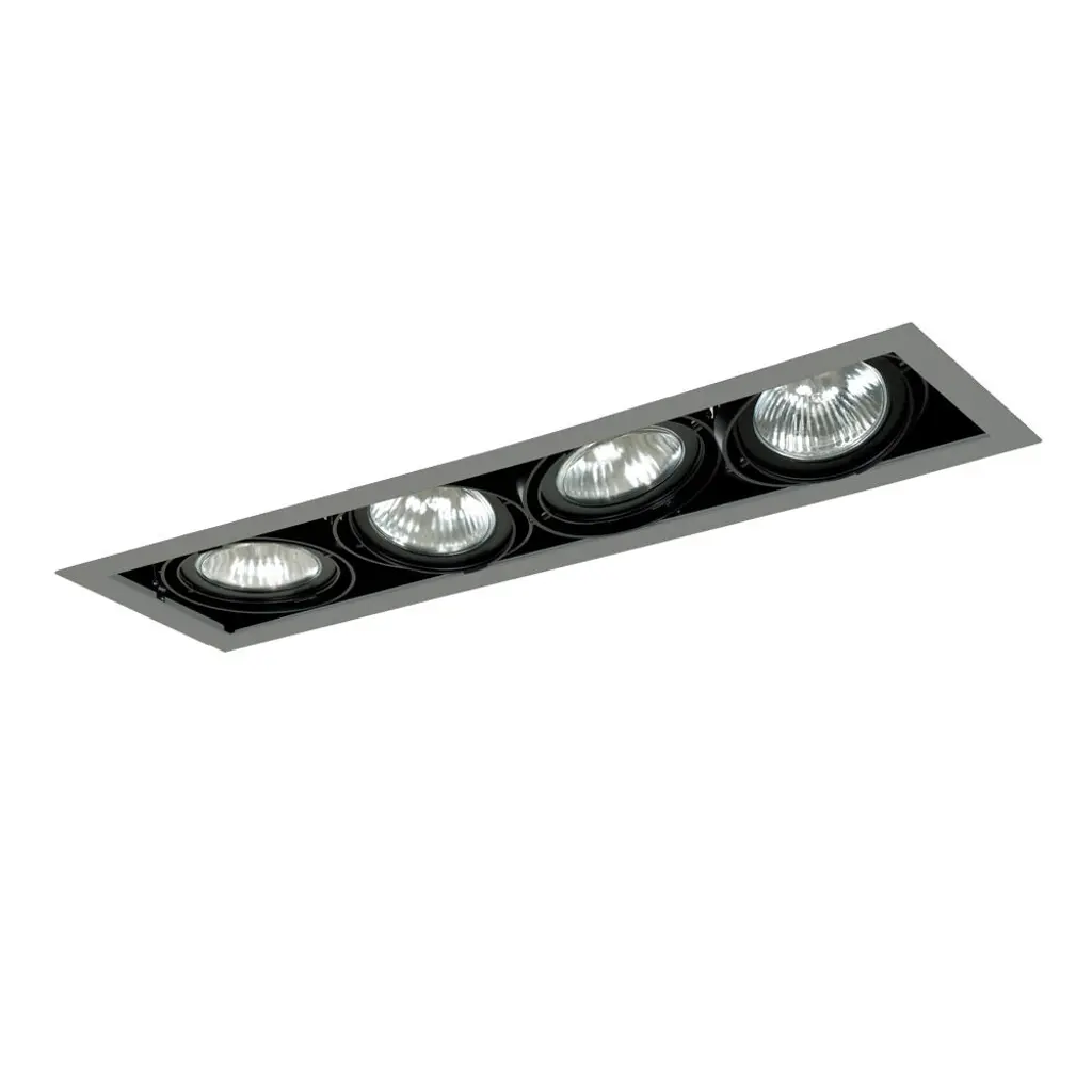 JESCO Four-Light Double Gimbal Linear Recessed Line Voltage Fixture. Bulb Base :(4) PAR30 120V 75W Lamp is not included. Dry Location. Hardwire. UL Listed.