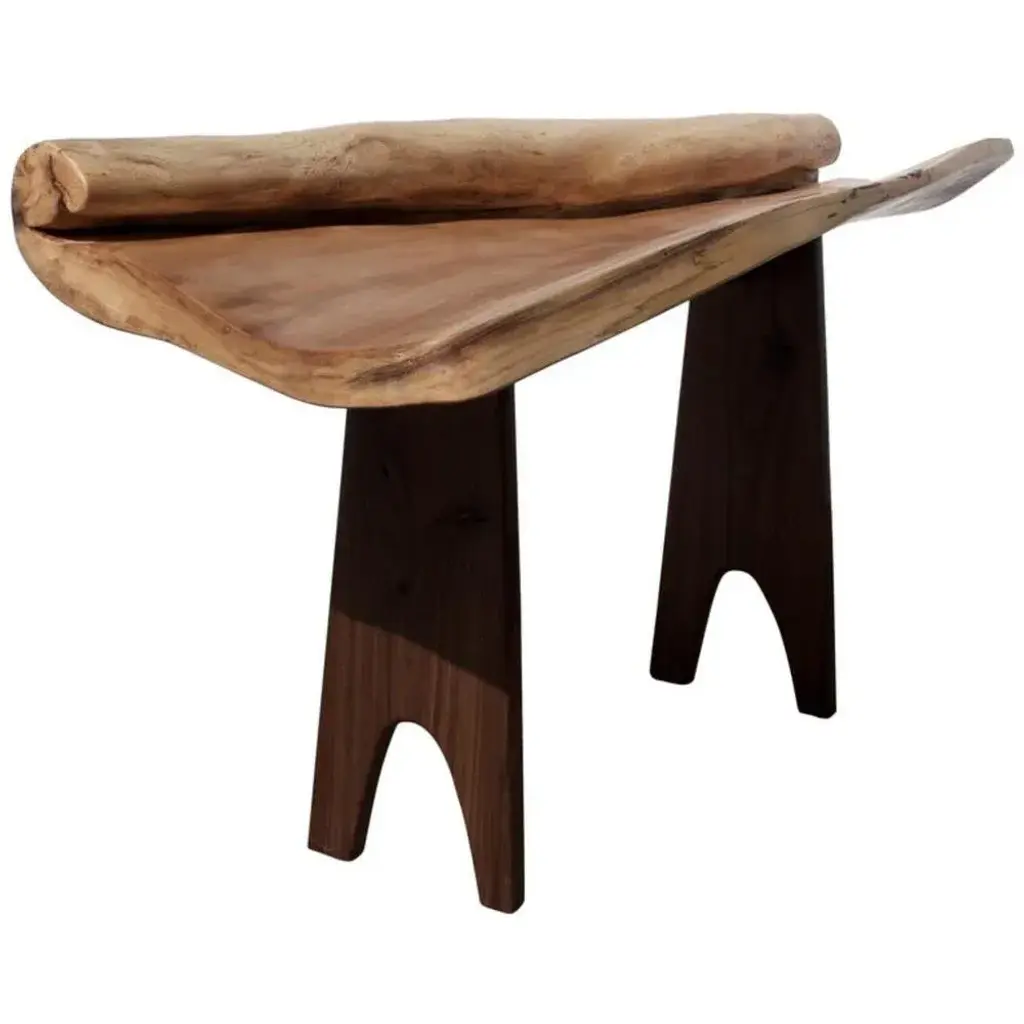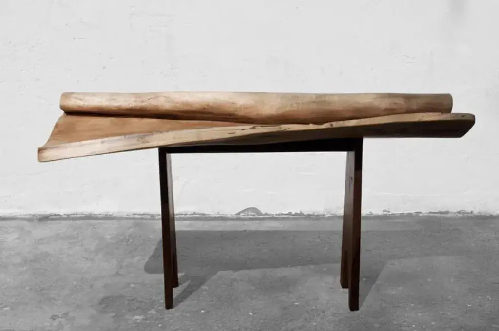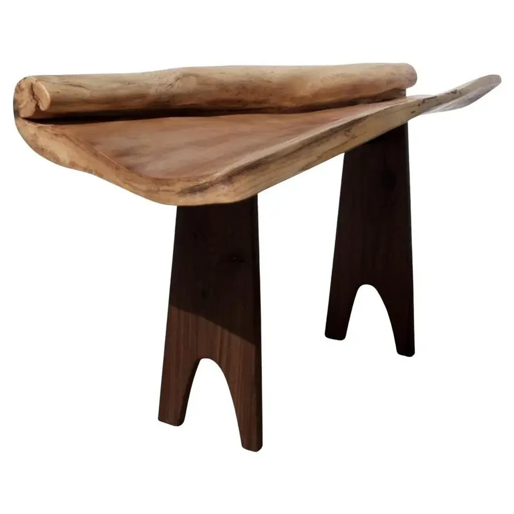 Unique signed console by jörg pietschmann materials: poplar, europe walnut measures: h 93 x w 174 x d 60 cm polished oil finish in pietschmann’s sculptures, trees that for centuries were part of a landscape and founded in primordial forces tell stories inscribed in the memory of their fibers. The forms jörg pietschmann pares from ancient trees are extensive and astonish with their physical presence, a combination of elegance and primeval nature. Pietschmann’s sculptures are monuments to the trees from which they derive. Being endowed with the ruggedness of primeval matter gives them a veritable vitality: figures that appear to have grown into their sculptural form of their own accord. But pietschmann’s tangibly present bodies have undergone a considerable degree of metamorphosis. In order to generate these unique tree specimens he examines the tree’s morphology and intrinsic inner map until the courses of its grain, of a curve, knots and cracks concur with his projections. The exploratory process is accompanied by constant modification, giving at the start of each new piece no more than an intimation of the figure that will later emerge. In their completion, pietschmann’s sculptures once more become universal form. Jörg pietschmann`s workshop is situated on the countryside close to hamburg. He works with indigenous timber as oak, lime tree, beech, poplar, olive tree and maple felled by the wind or human hand, together with tropical timber found on his travels. This piece is attributed to the mentioned designer/maker. It has no attribution mark and no official proof of authenticity, however it is well documented in design history. I take full responsibility for any authenticity issues arising from misattribution