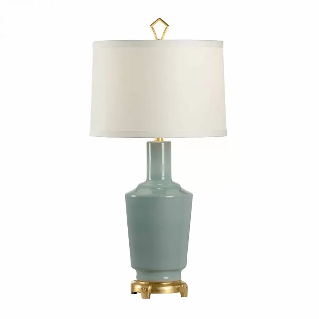 Blue Green Glaze On Ceramic With Gold Leaf Steel Base