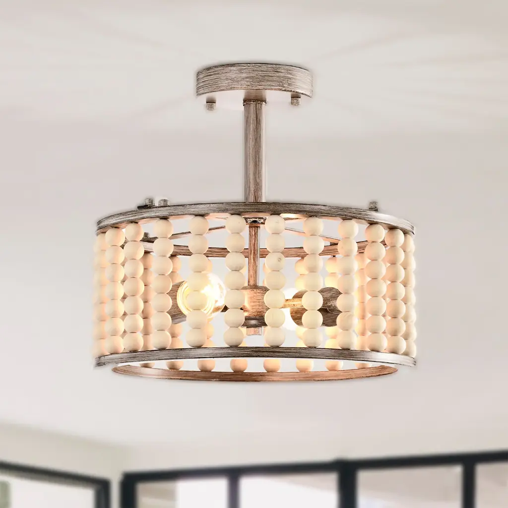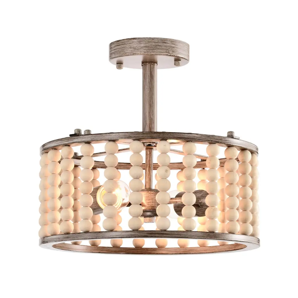 Silas 14 Inch Drum Shape Bead Semi Flush Mount With 2 Light - Imitation Wood Grain