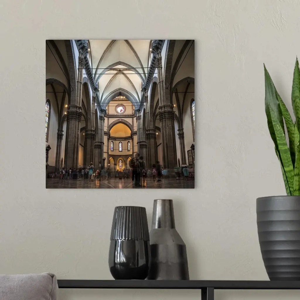 people in a cathedral, color photograph