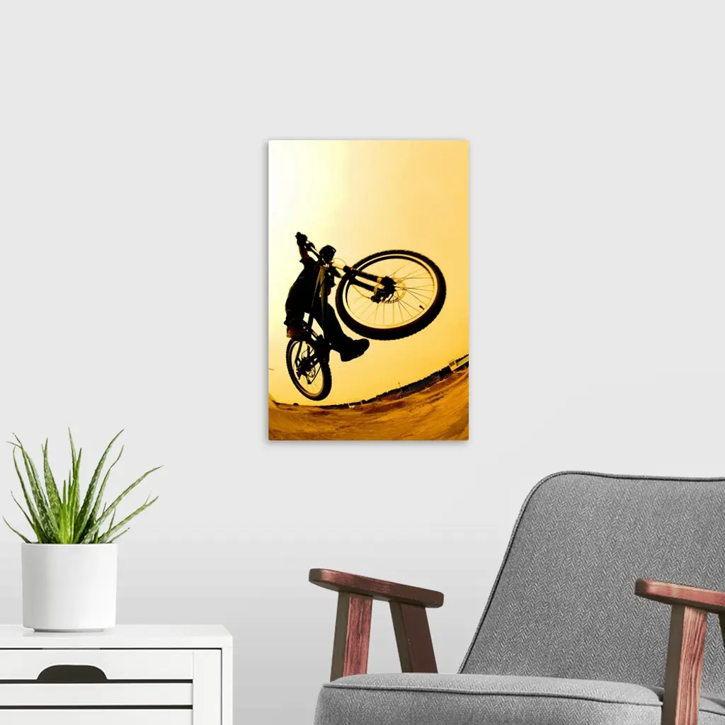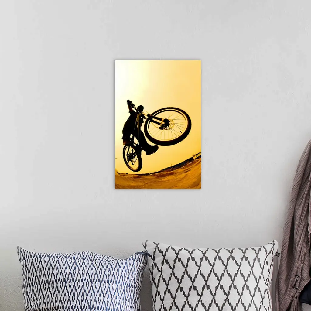 Silhouette Of A Cyclist Against A Yellow Sky wall art for home and office decor. Discover canvas art prints, photos, mural, big canvas art and framed wall art in GreatBigCanvas.com's varied collections.