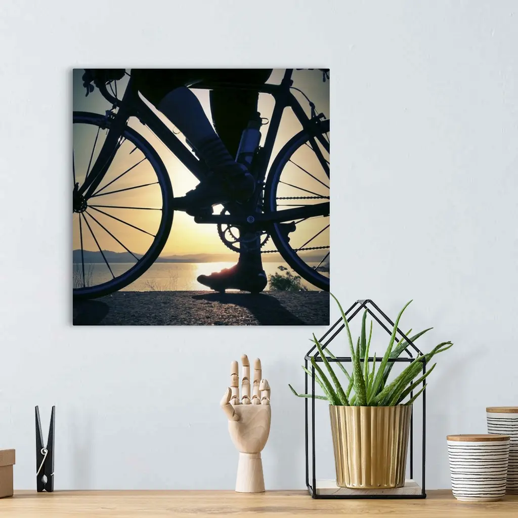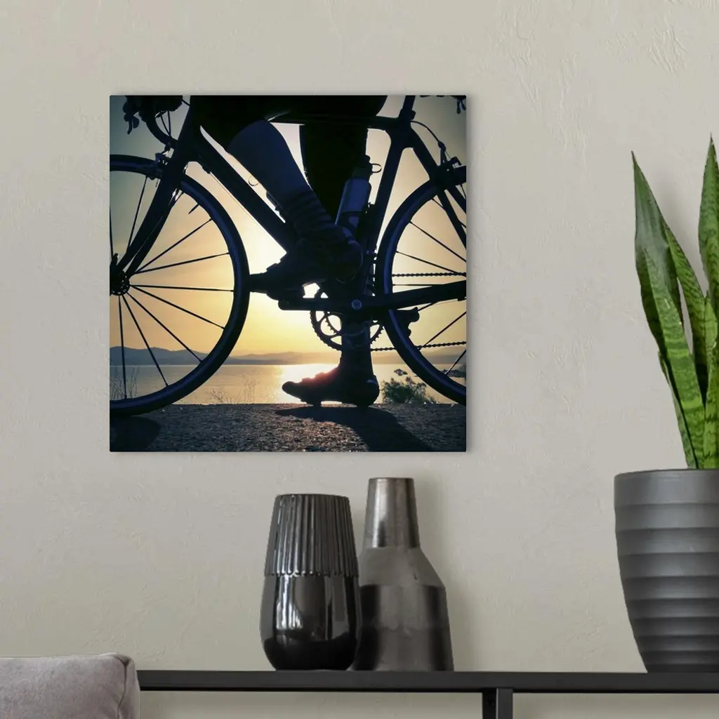 Silhouette Of A Cyclist And Road Bike At Sunrise