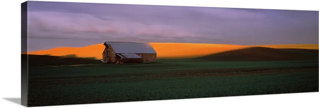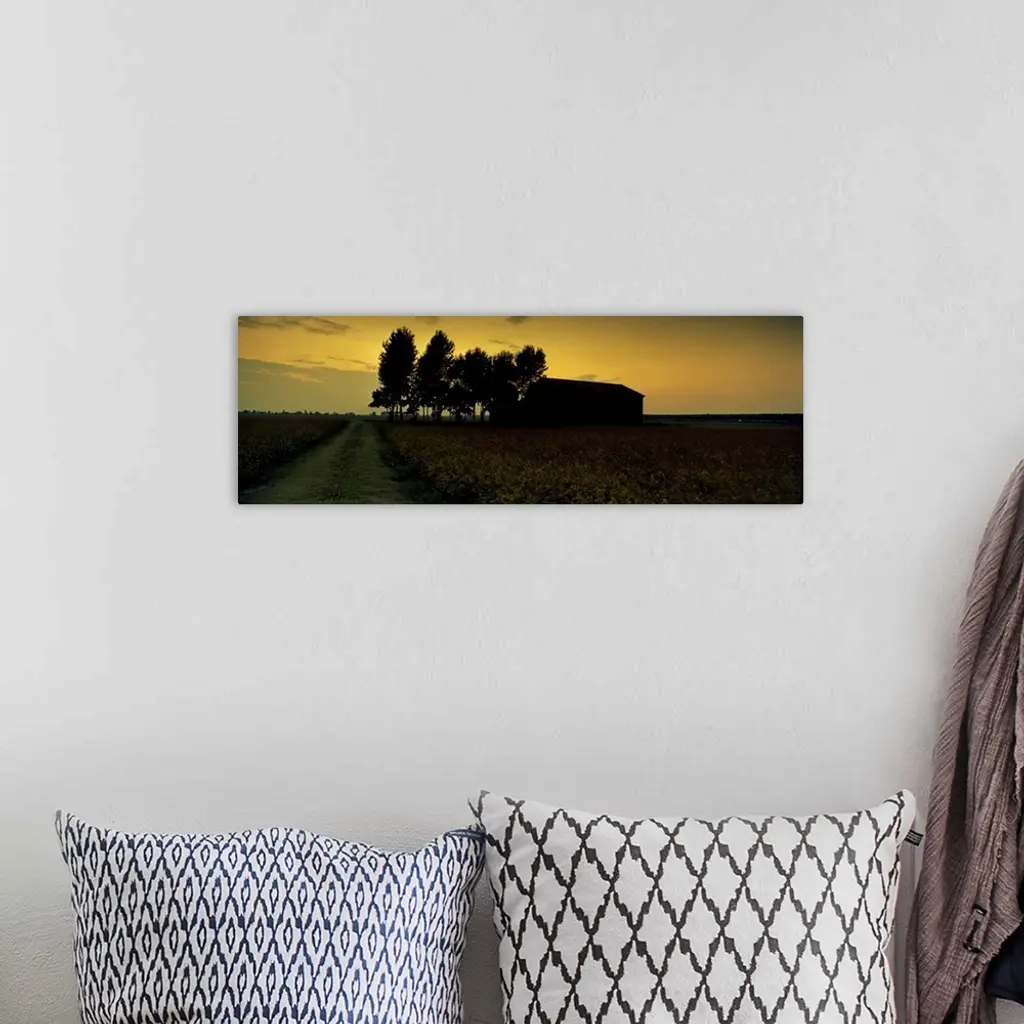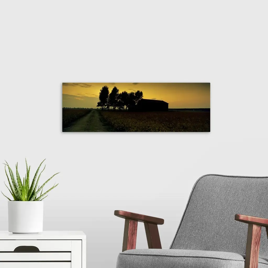Silhouette of a farmhouse at sunset, Polesine, Veneto, Italy wall art for home and office decor. Discover canvas art prints, photos, mural, big canvas art and framed wall art in GreatBigCanvas.com's varied collections.
