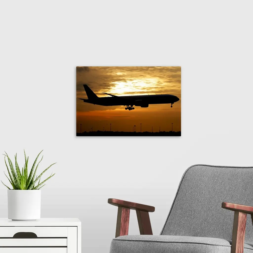 Silhouette of a Pakistan International Airlines Boeing 777, Milano Malpensa Airport, Italy.