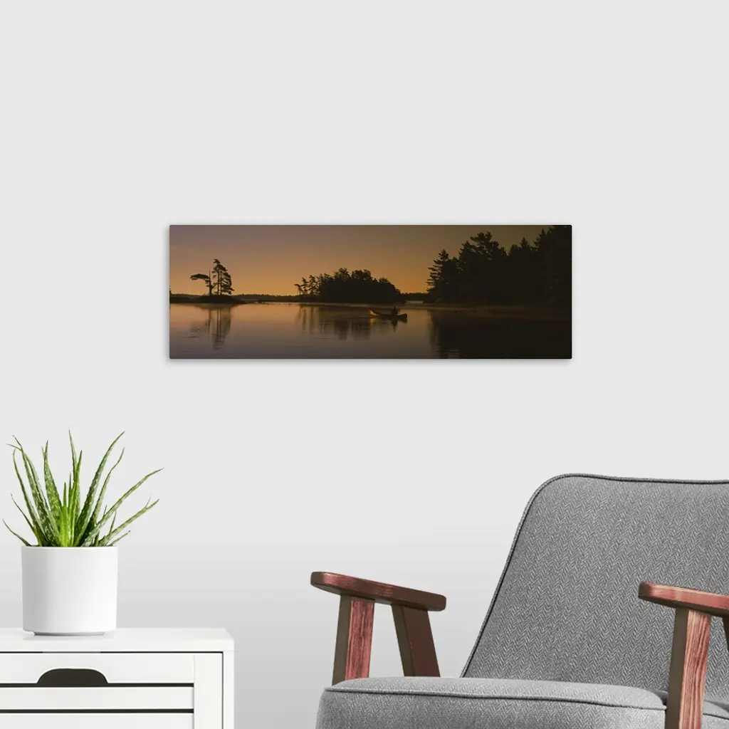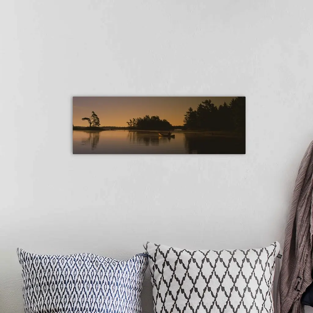 Silhouette of a person in a canoe on a lake, Kejimkujik Lake, Kejimkujik National Park, Nova Scotia, Canada wall art for home and office decor. Discover canvas art prints, photos, mural, big canvas art and framed wall art in GreatBigCanvas.com's varied collections.