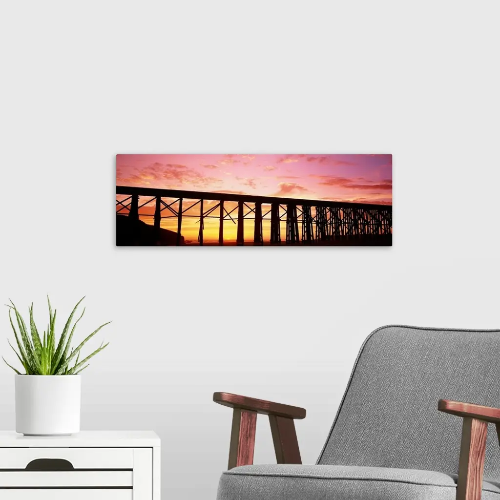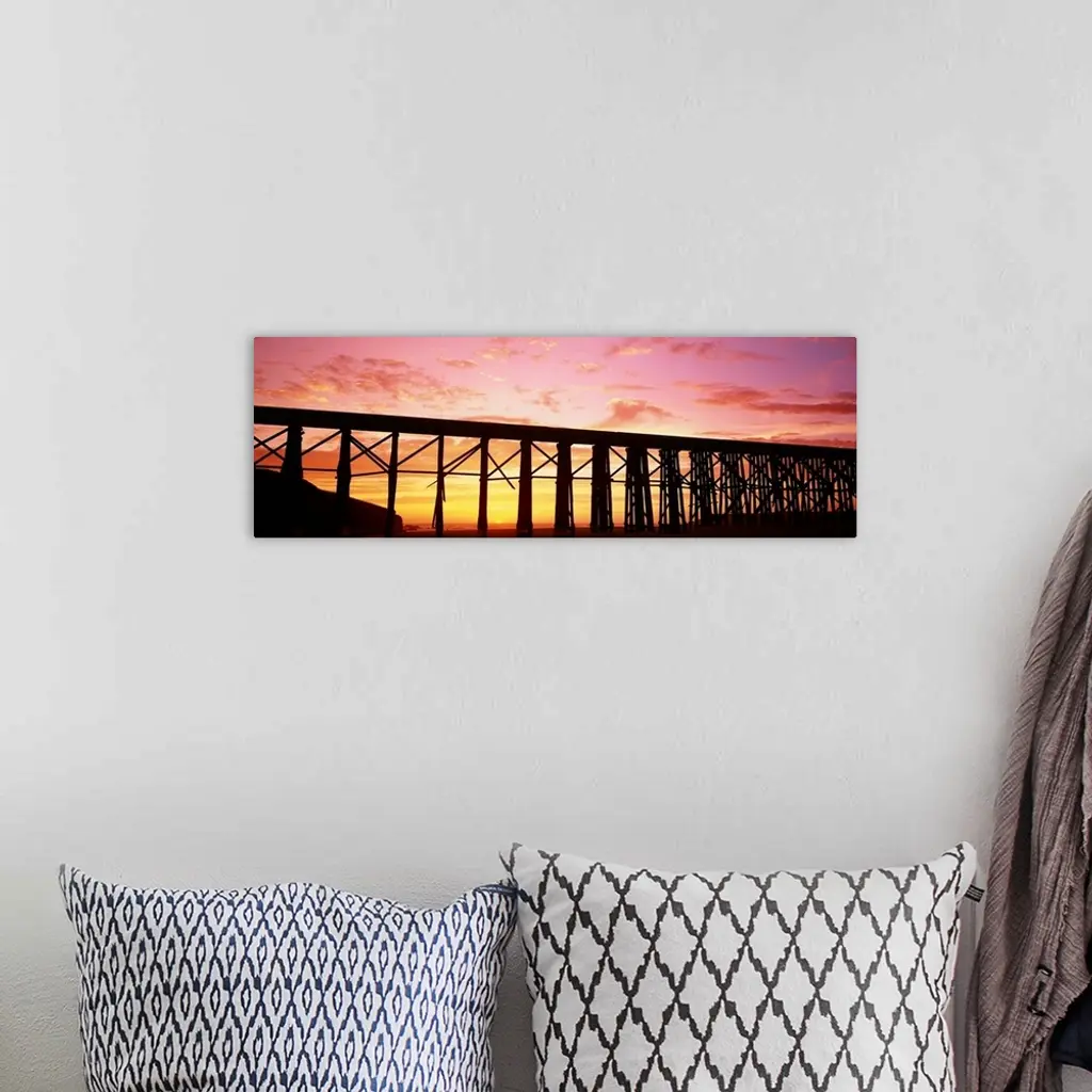 Silhouette of a railway bridge, Fort Bragg, California wall art for home and office decor. Discover canvas art prints, photos, mural, big canvas art and framed wall art in GreatBigCanvas.com's varied collections.