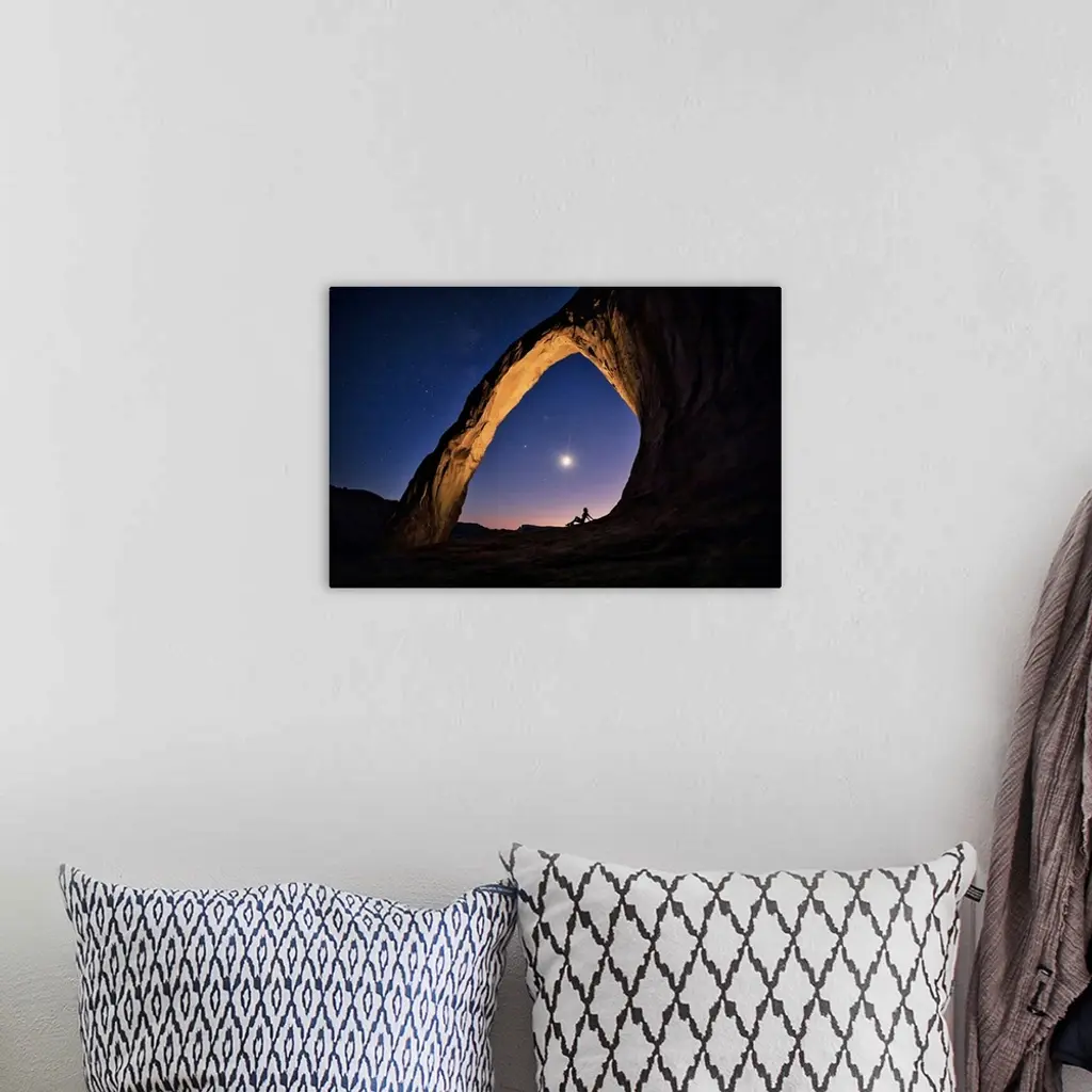 Silhouette of a woman under Corona Arch in Moab, Utah