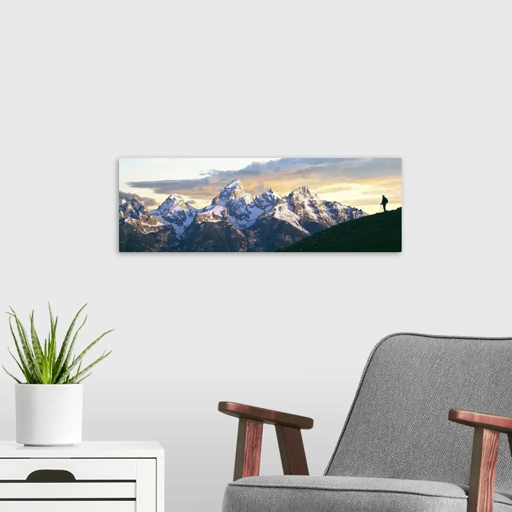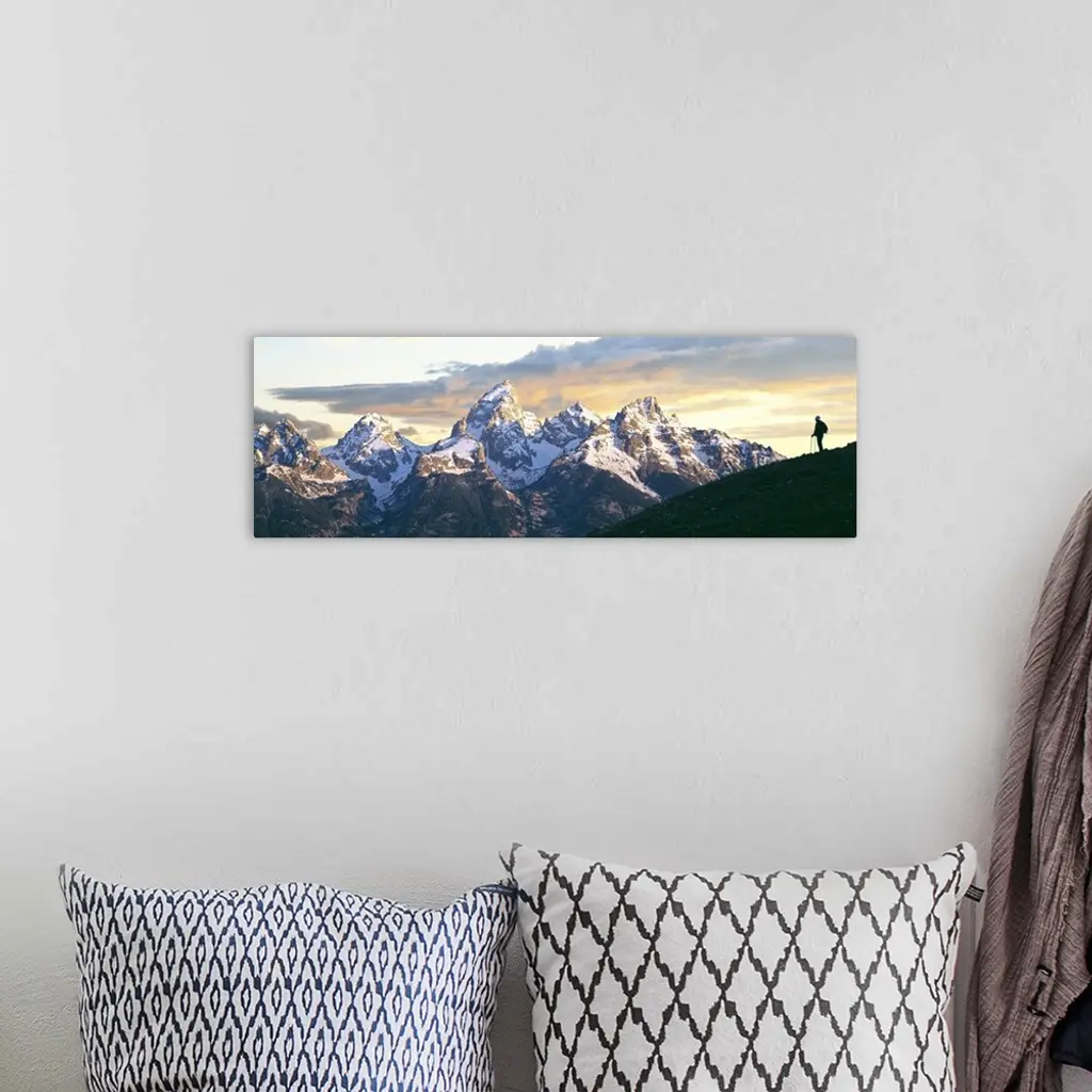 Silhouette Of Hiker Looking At Teton Range, Wyoming