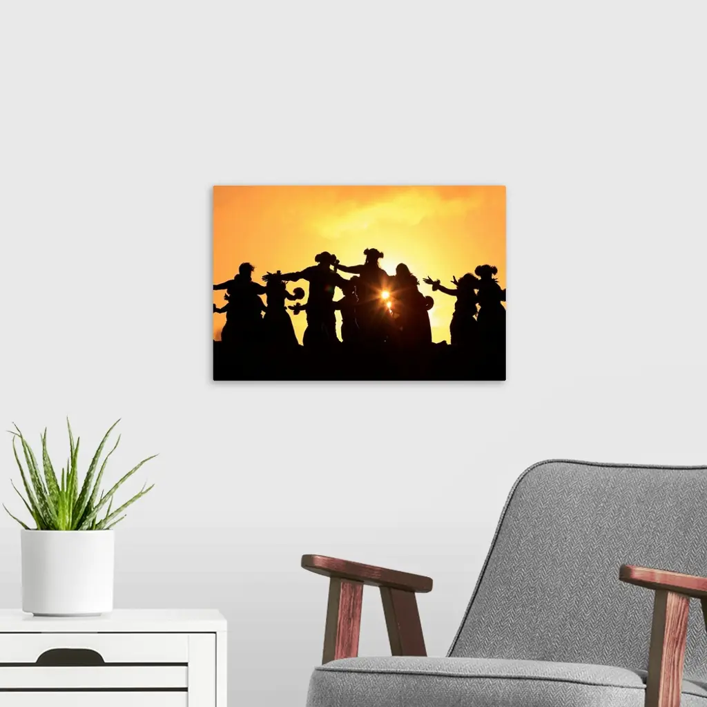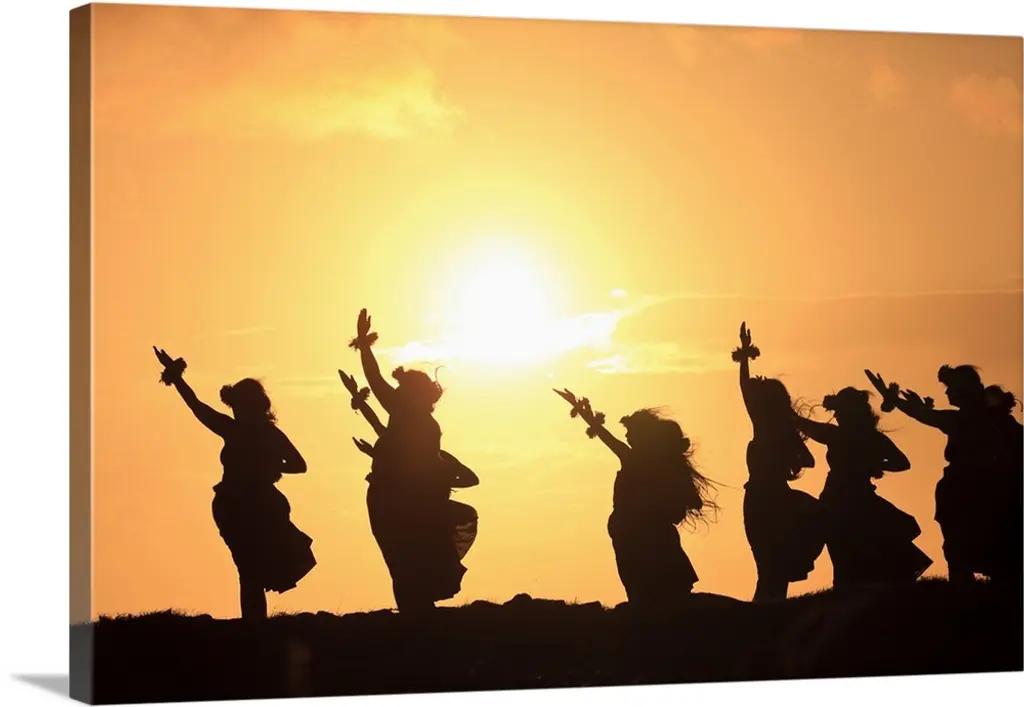 Silhouette of hula dancers at sunrise, Molokai, Hawaii wall art for home and office decor. Discover canvas art prints, photos, mural, big canvas art and framed wall art in GreatBigCanvas.com's varied collections.