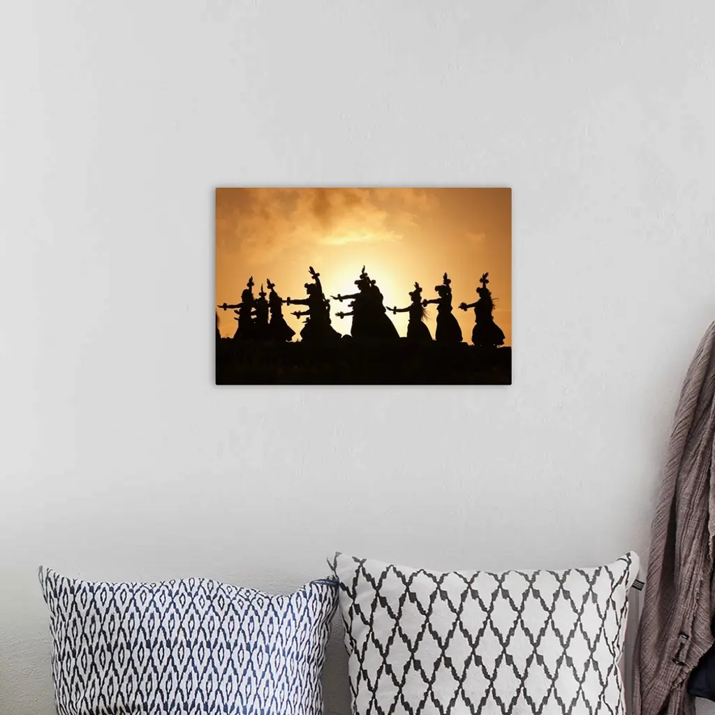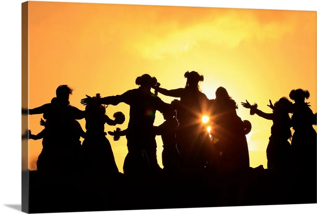 Silhouette of hula dancers at sunrise Molokai Hawaii wall art for home and office decor. Discover canvas art prints, photos, mural, big canvas art and framed wall art in GreatBigCanvas.com's varied collections.