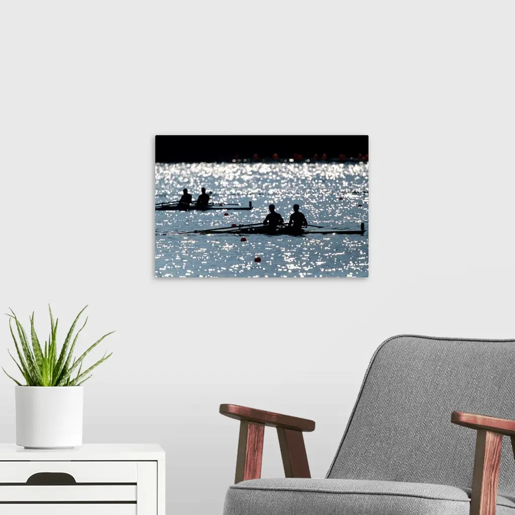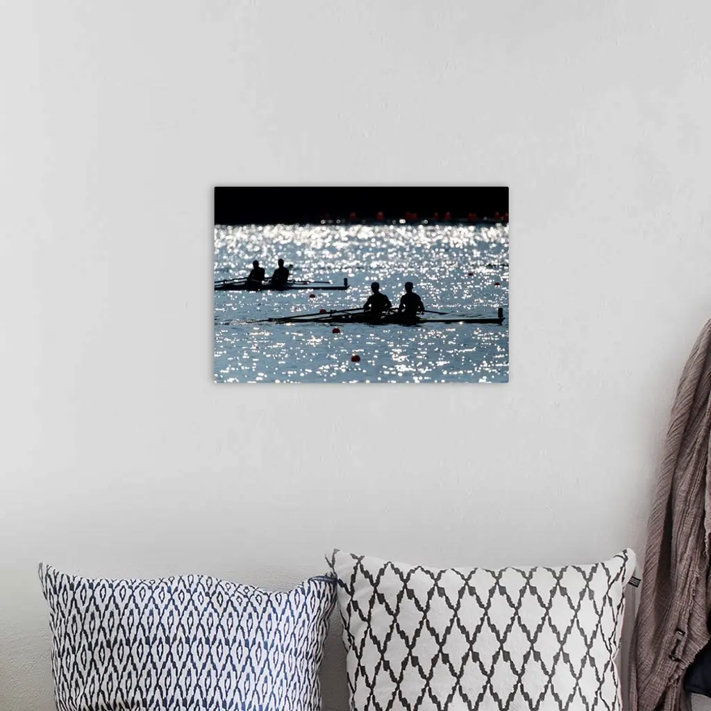 Silhouette of men's pairs rowing teams in action wall art for home and office decor. Discover canvas art prints, photos, mural, big canvas art and framed wall art in GreatBigCanvas.com's varied collections.