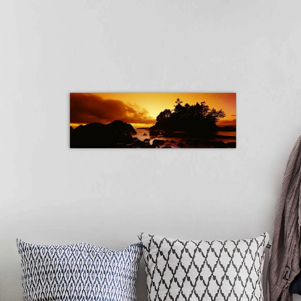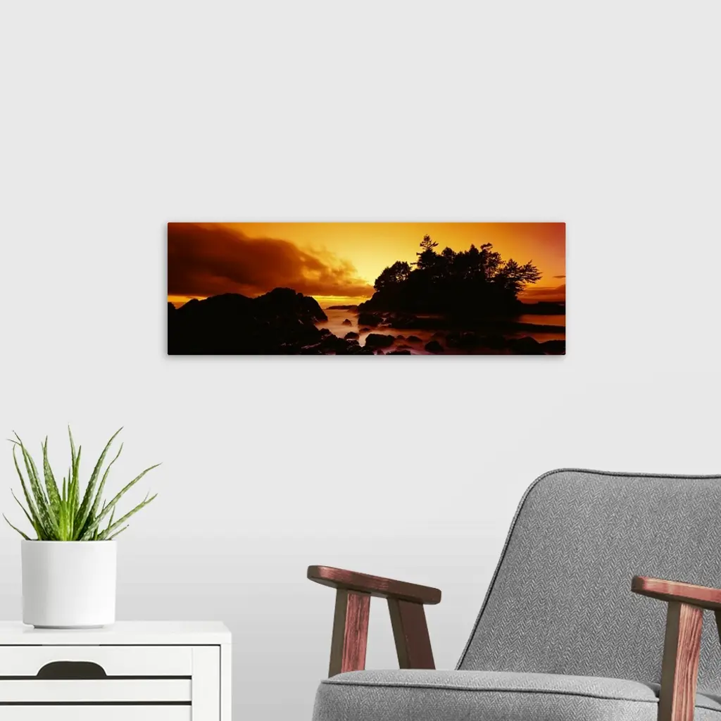 Silhouette Of Rocks And Trees At Sunset, Tofino, Vancouver Island, British Columbia, Canada