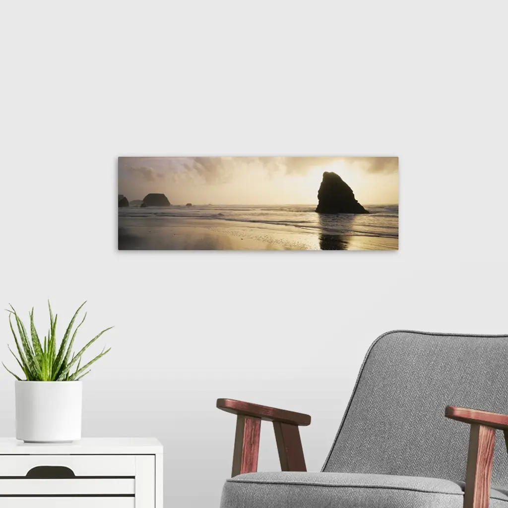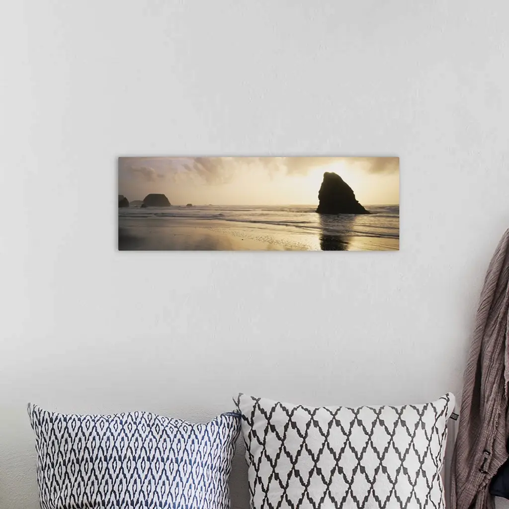 Silhouette of rocks on the beach, Fort Bragg, Mendocino, California wall art for home and office decor. Discover canvas art prints, photos, mural, big canvas art and framed wall art in GreatBigCanvas.com's varied collections.