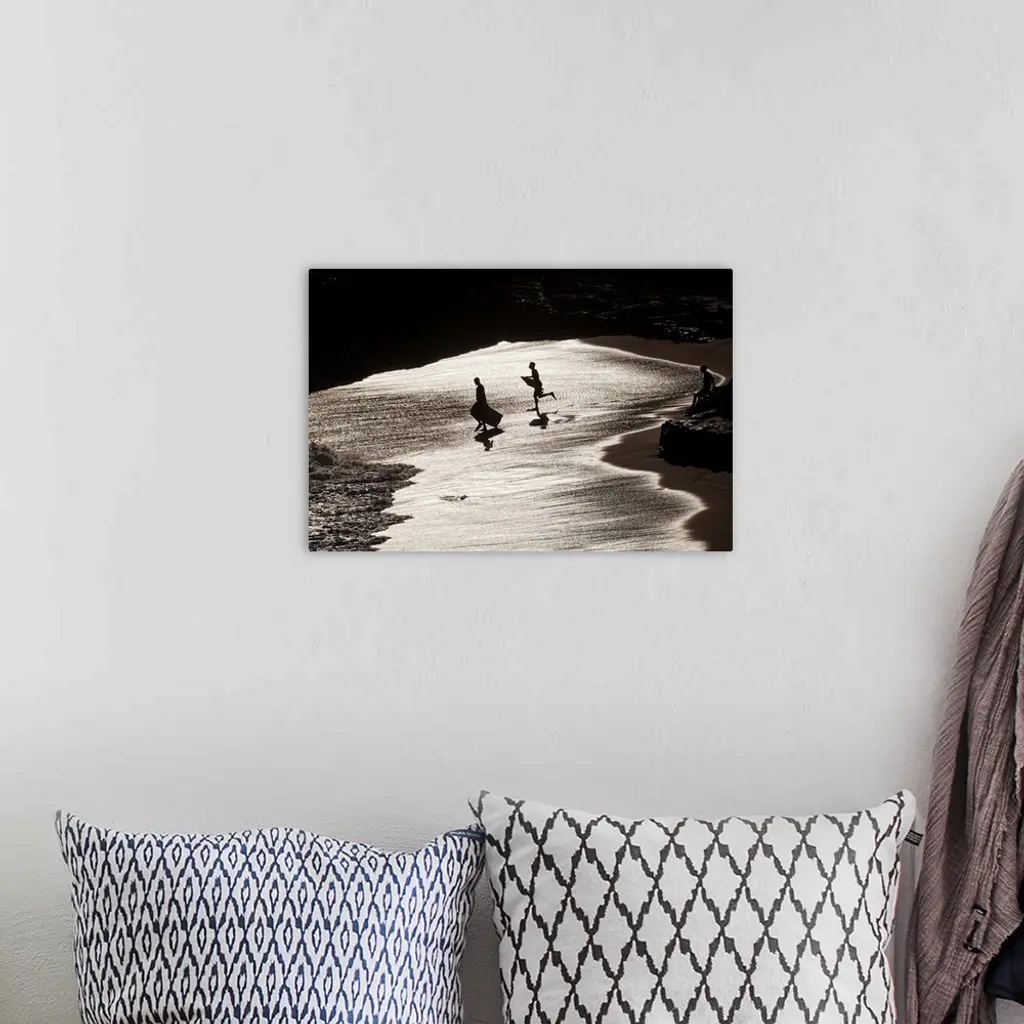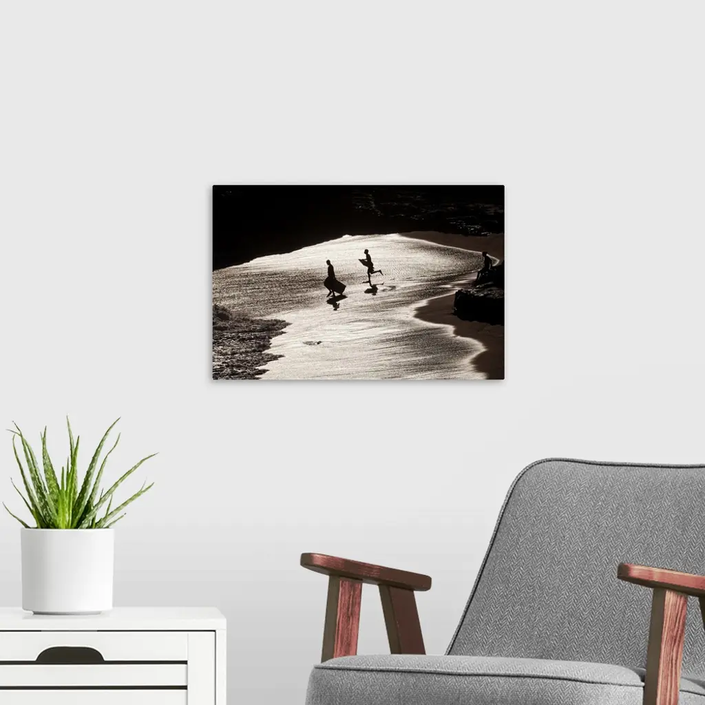 Silhouette of surfers on the beach, Kauai, Hawaii wall art for home and office decor. Discover canvas art prints, photos, mural, big canvas art and framed wall art in GreatBigCanvas.com's varied collections.