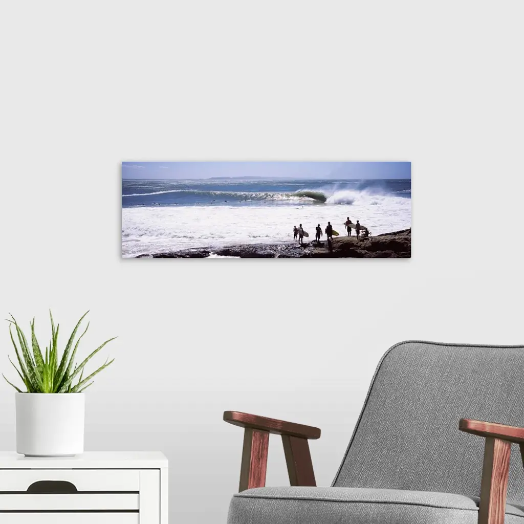 Silhouette Of Surfers Standing On The Beach, Australia