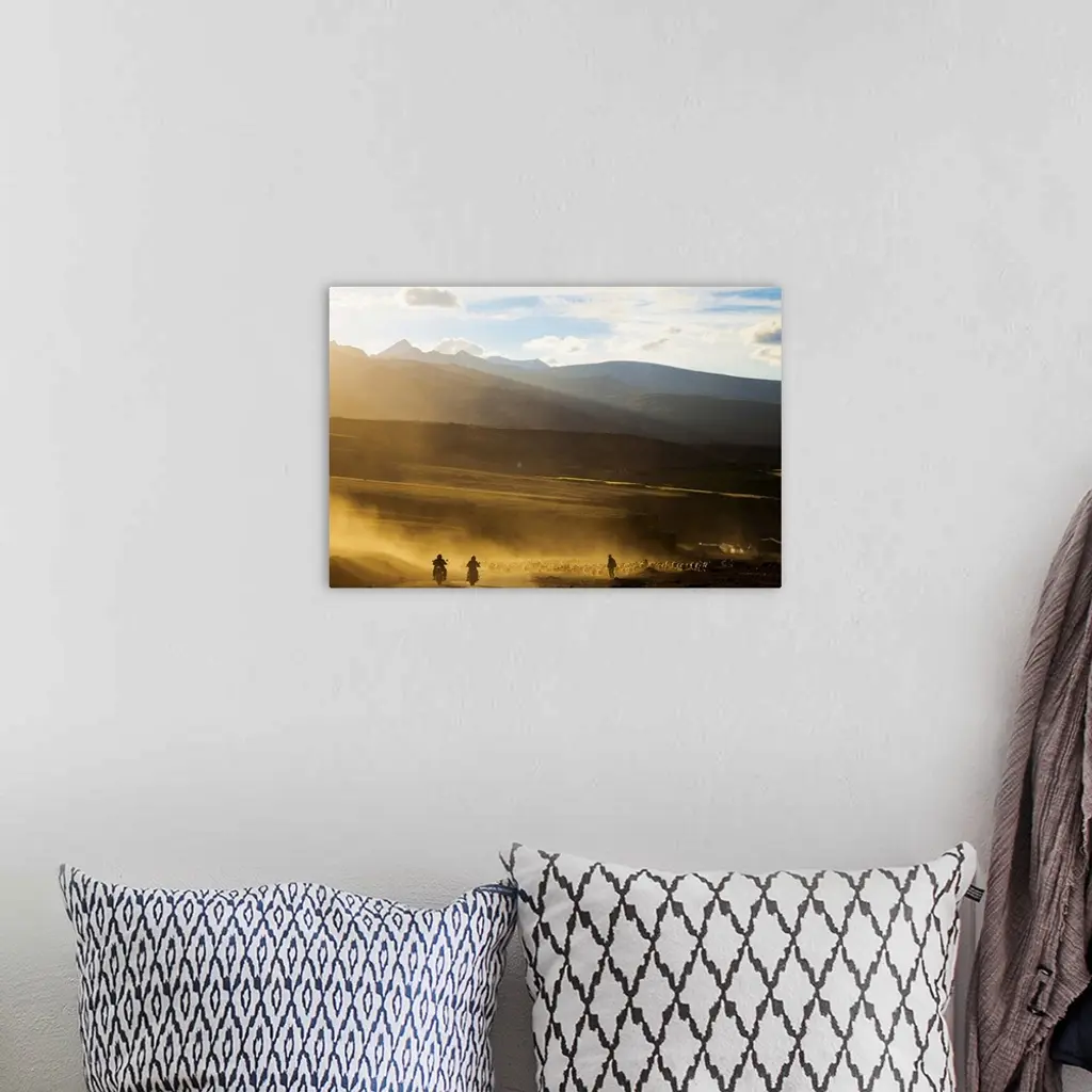 Silhouette Riders And Shepherd On The Road