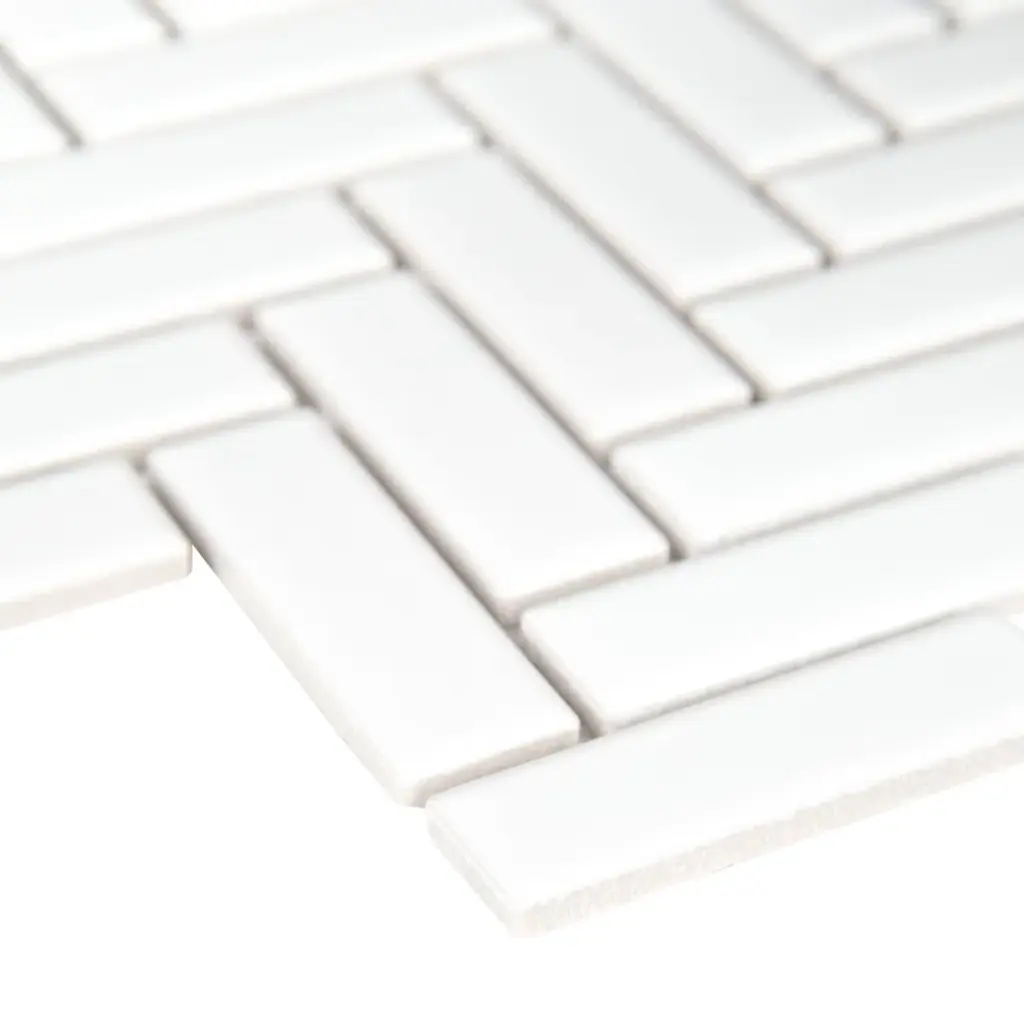 Inspire timeless design with this porcelain herringbone mosaic tile, showcasing Silica White — a cool, graceful shade that brings a sense of airiness and calm to any space. This elegant tile features a traditional herringbone pattern and comes mesh-backed for effortless installation. Its waterproof and slip-resistant qualities ensure lasting durability, making it perfect for kitchens, bathrooms, accent walls, and more. The glossy finish beautifully complements natural materials like marble, wood, and granite, creating a sophisticated and harmonious design statement that elevates any interior.