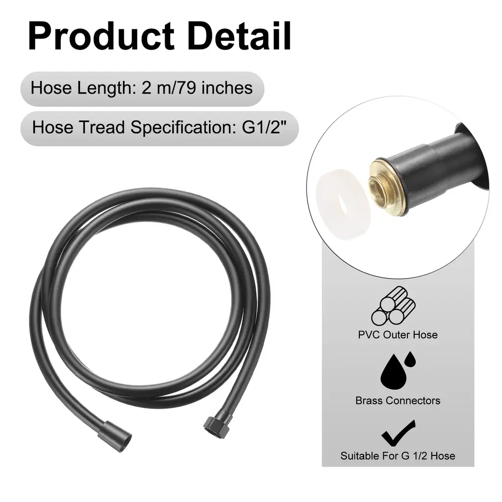 Description:Materials: The shower nozzle hose has three layers of material (Inner Layer Of Thickened Silicone, Middle Layer Of Thickened Pressure-Resistant Braided Layer, And Outer Layer Of Anti-Corrosion Isolation Adhesive), which is flexible, easy to handle, and resistant to wear and tear.Anti-Winding Designed: The brass fitting allows the shower head to be rotated freely for a full 360-degree rotation anti-winding design. You Can Easily Enjoy Every Shower.Double-Layer Protection: The shower hose features a thickened zinc-plating steel interface and a double-layer zinc-plating steel protective sleeve. The double-layer brass sleeve ensures a secure connection, preventing pipes from slipping off and enhancing durability for prolonged use.Wide Application: The shower hose replacement can be used to replace handheld shower heads and bidet sprayers. Fitting for bathtubs, showers, pet bathing, elderly and disabled care, bidet sprayers, shower wands, RVs and more.Specification:Size: 1.5 m/59 inchesInner Diameter: 20 mm/0.8 inchPackage Content: 1 x Shower Hose with Shower Head Holder