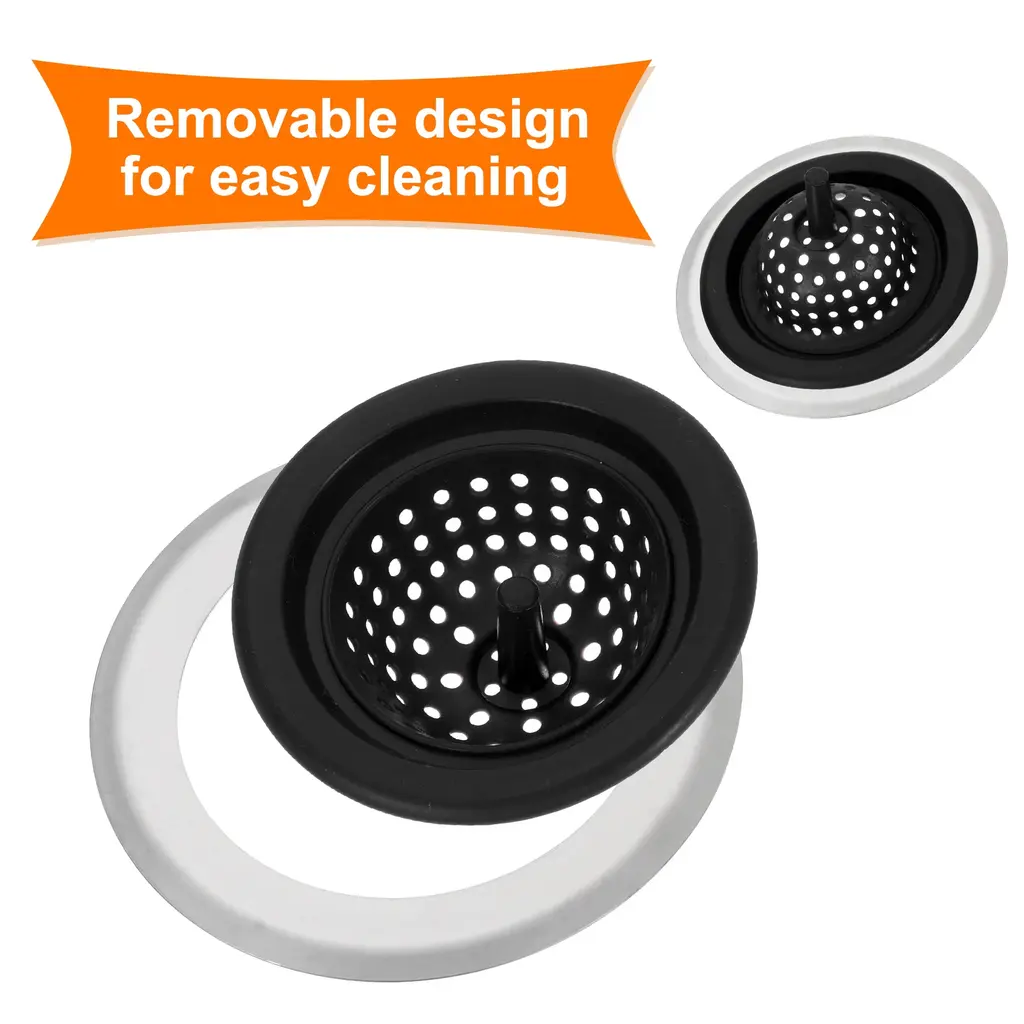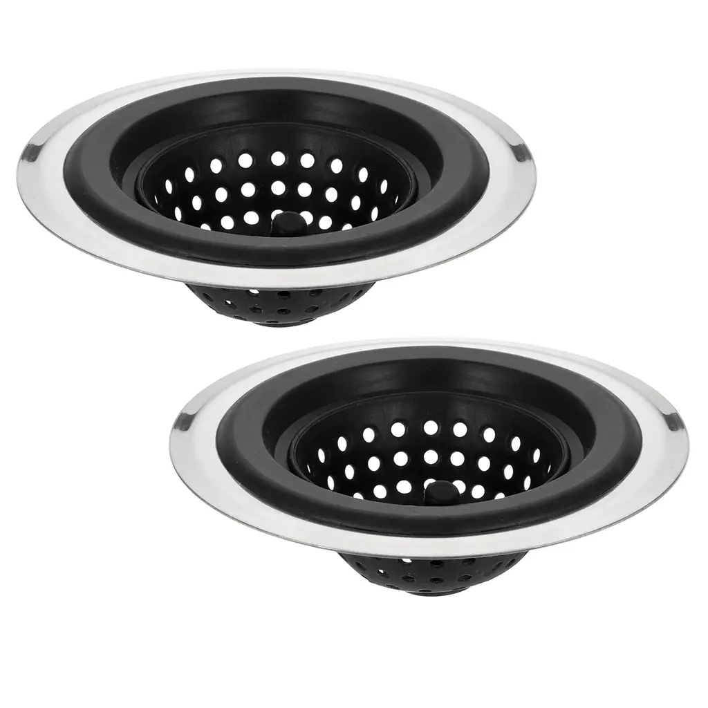 Description[Materia] - Our kitchen sink filter is made of stainless steel and silicone, which is very durable and anti-slip, there is no odor and no need to worry about deformation. It can cover the sink and drainage pipes floor drain well and can be used repeatedly.[Handle Design] - The sink drain strainer has a small handle in the middle, which can remove residues without getting hands dirty and is easy to clean. Easy to put in and out, just place it on top of the drain or remove it. It fits the pipe tightly and will not shift even if it is flushed with water.[Anti-clogging Strainer] - This kitchen sink drain basket has multiple micro perforation drainage holes to block more food particles for high water flow. It can effectively prevent food residues, peels, leaves, hair, etc. from flowing into the drain and prevent clogging.[Wide Application] - The anti-clogging sewer strainer has a very good filtering effect and can be matched well with the drain cover. It can be widely used in drainage pipes in kitchens, bathrooms, balconies, etc.SpecificationMaterial: Stainless Steel + SiliconeOverall Size: 120 x 38mm/4.72 x 1.5inch(L*W)Color: BlackStyle: ModernPackage Listing2 x Sink Drain Strainer