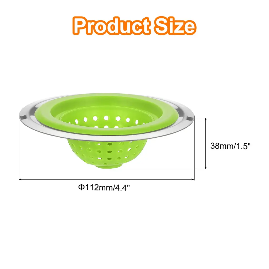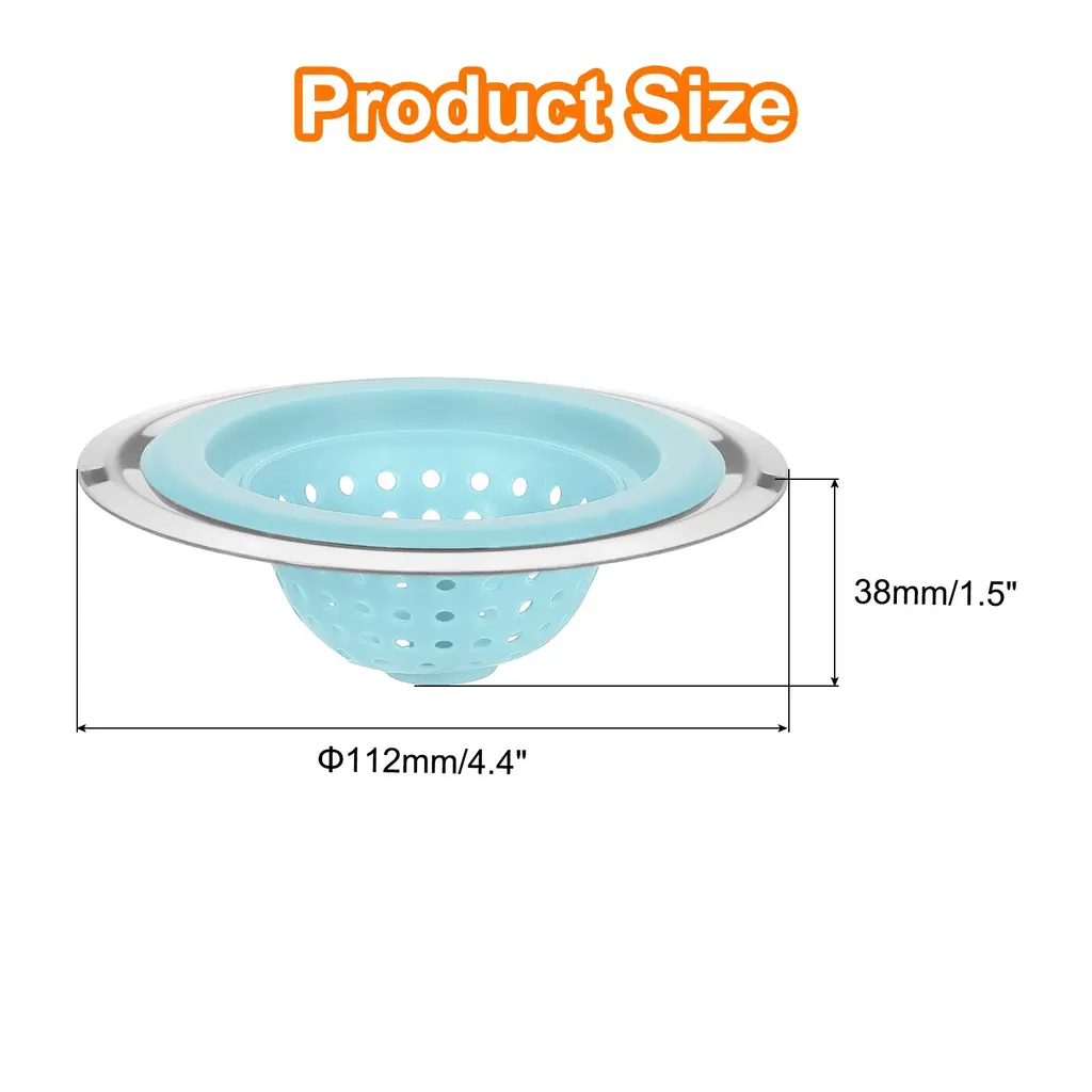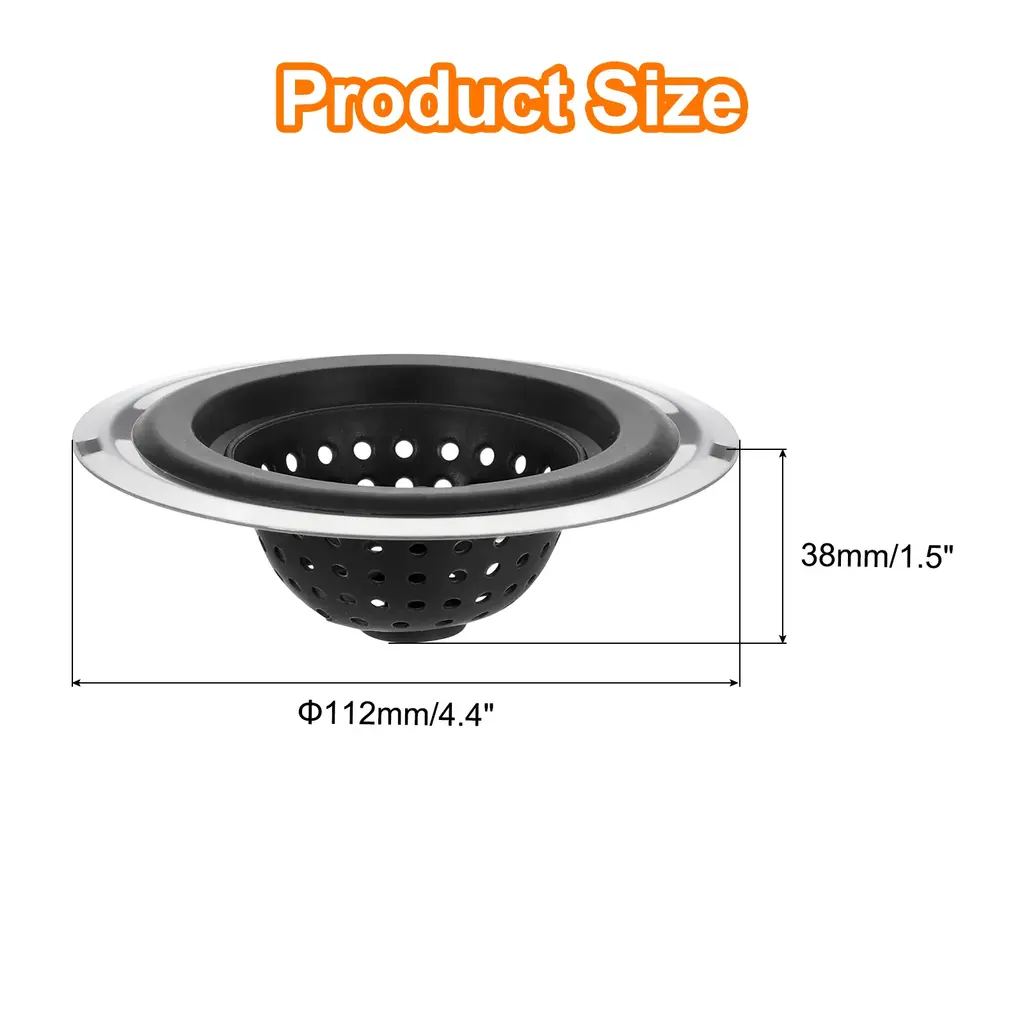 Description[Materia] - Our kitchen sink filter is made of stainless steel and silicone, which is very durable and anti-slip, there is no odor and no need to worry about deformation. It can cover the sink and drainage pipes floor drain well and can be used repeatedly.[Handle Design] - The sink drain strainer has a small handle in the middle, which can remove residues without getting hands dirty and is easy to clean. Easy to put in and out, just place it on top of the drain or remove it. It fits the pipe tightly and will not shift even if it is flushed with water.[Anti-clogging Strainer] - This kitchen sink drain basket has multiple micro perforation drainage holes to block more food particles for high water flow. It can effectively prevent food residues, peels, leaves, hair, etc. from flowing into the drain and prevent clogging.[Wide Application] - The anti-clogging sewer strainer has a very good filtering effect and can be matched well with the drain cover. It can be widely used in drainage pipes in kitchens, bathrooms, balconies, etc.SpecificationMaterial: Stainless Steel + SiliconeOverall Size: 112 x 38mm/4.4 x 1.5inch(L*W)Color: BlackStyle: ModernPackage Listing4 x Sink Drain Strainer