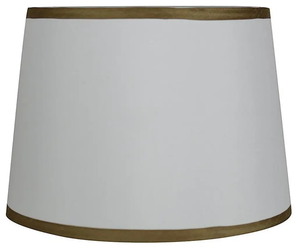 Urbanest silk French drum lampshade.Hardback style with a spider fitter.Top diameter measures 10" across, bottom diameter measures 12" across and shade measures 8 1/2" overall height.Shade is black faux silk with gold trim on the top and bottomMaximum recommended wattage is 100 watts. Bulb not included.