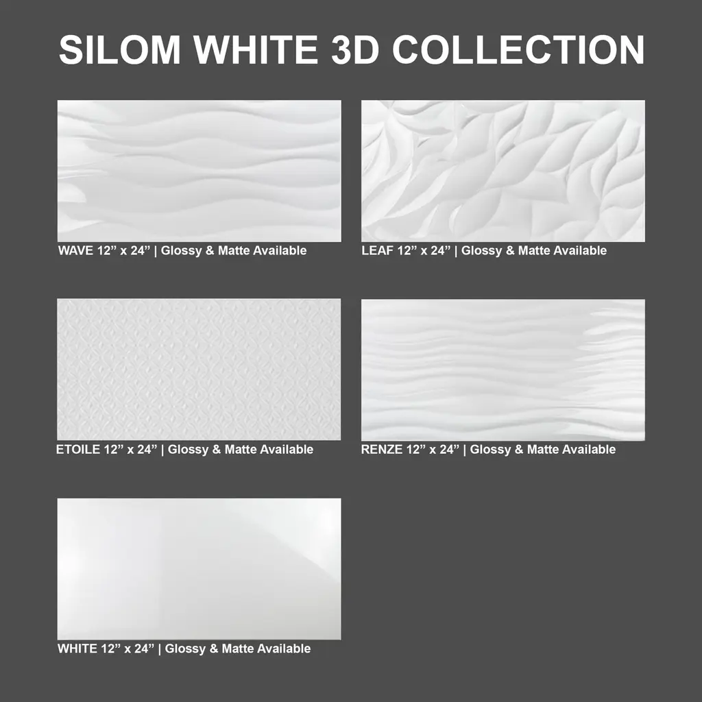 Silom White 12" X 24" 3D Textured Wall Tile Glossy/matte - Etoile Glossy