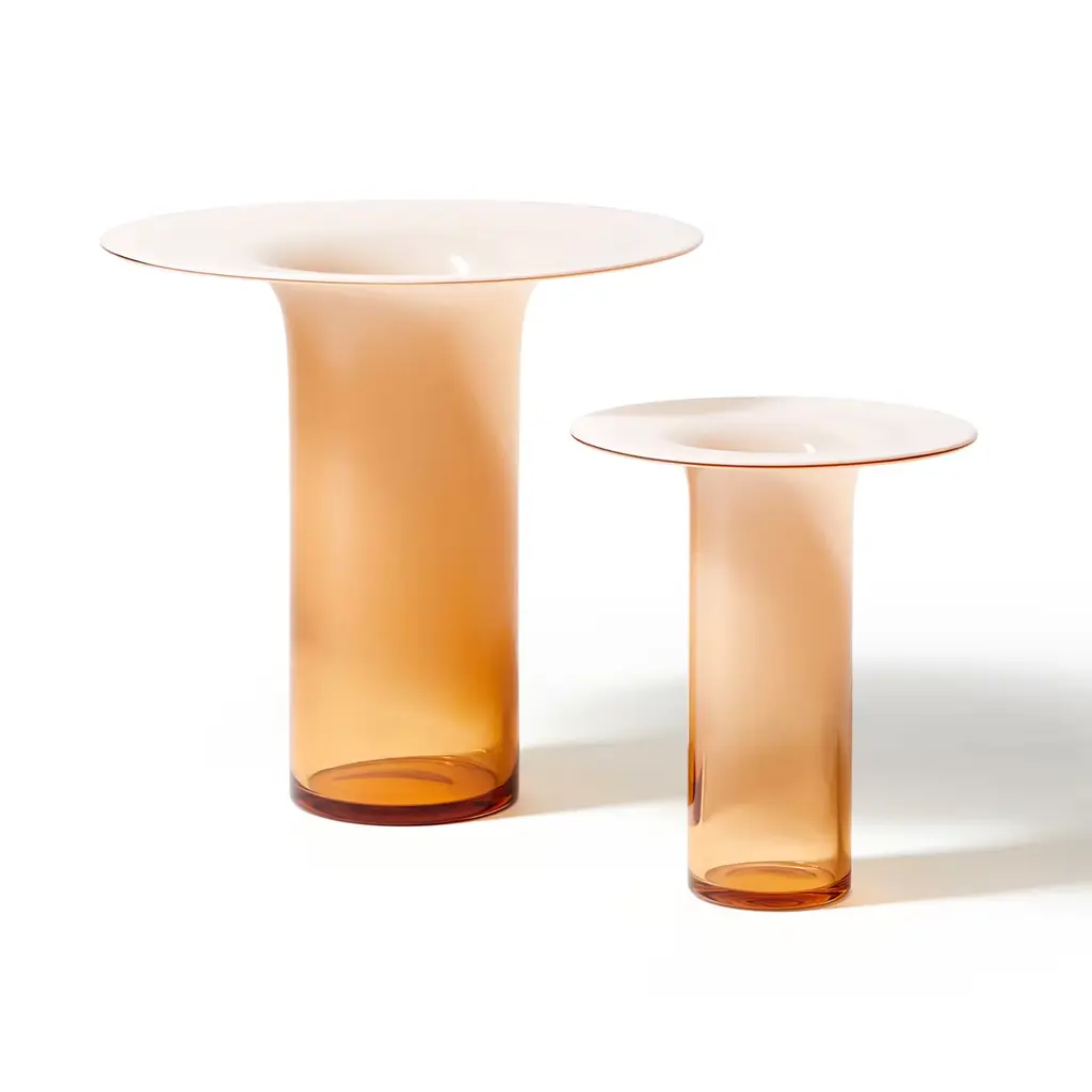 Silvan - Blown venetian glass vase. Inspired by a lily and its sinuous shape that retains water, Silvan is a hand-blown venetian glass vase available in two heights, 35 and 26 cm, in shaded pink or shaded amethyst.