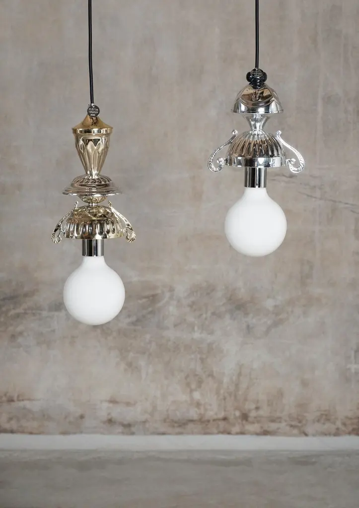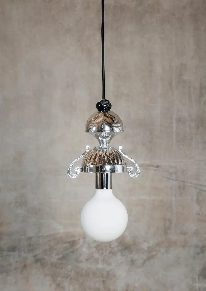 Silver, Black L2 Light by FléttaDimensions: 40 x 4 cmMaterials: silverTrophy is a collection of tables, lights, flowerpots and shelves made of old trophies collected from athletes and sports clubs in Iceland. Trophies are a part of big moments in people’s lives, achievements, and memories. They tell a story of countless hours and strenuous exercises. They are made for a moment, when they are lifted up in triumph.Designers Birta Rós Brynjólfsdóttir and Hrefna Sigurðardóttir founded Flétta in 2018 but have been working together since 2014. Both with backgrounds in product design from Iceland University of the Arts, they bring a high degree of conceptual and process innovation to their works using mundane or often overlookedproducts and materials. Their practice revolves around responsible design, utilizing reused materials and local production with evident respect for craftsmanship and storytelling.