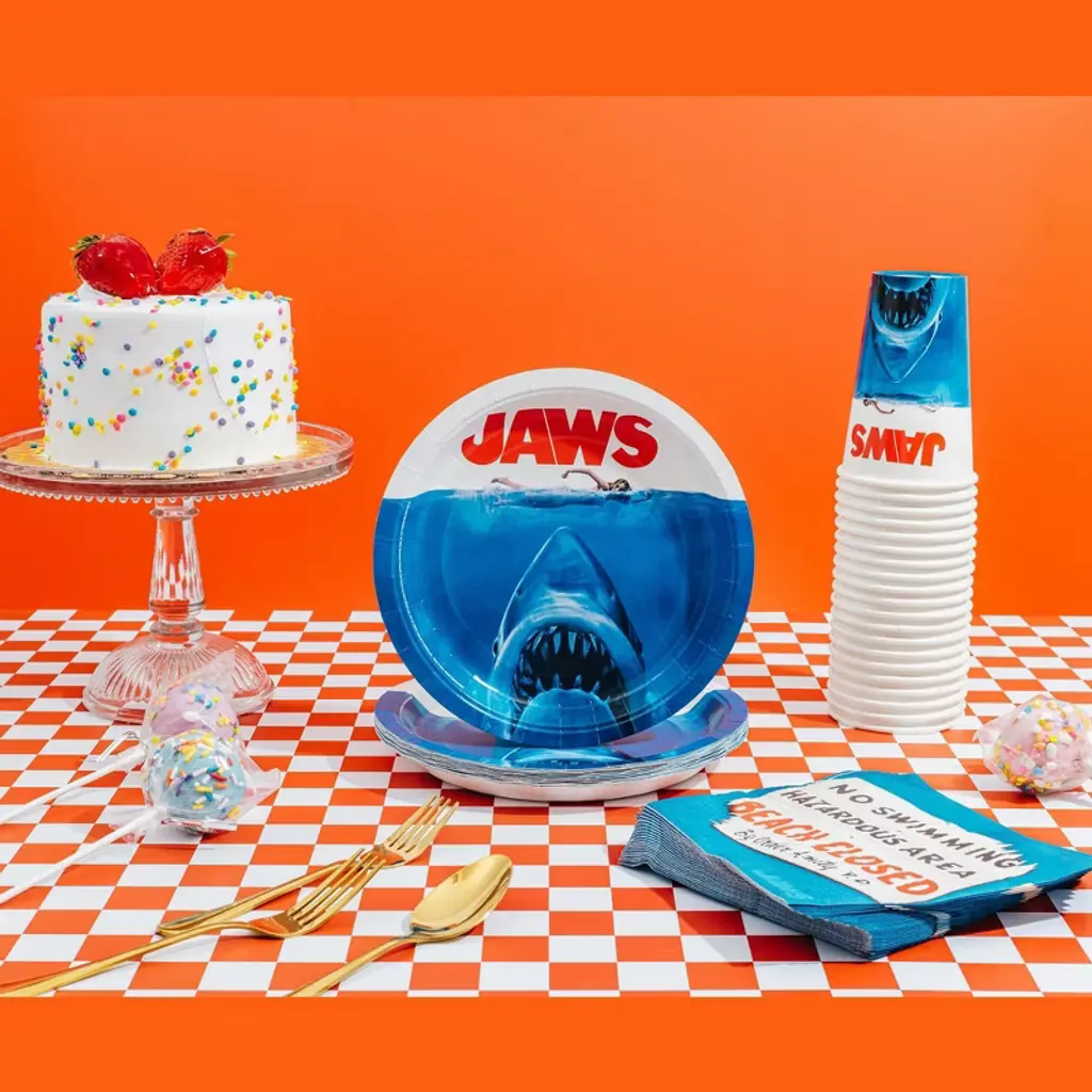 Just when you thought it was safe to throw a party… the Jaws 60-Piece Paper Party Tableware Set surfaces to take your event to legendary levels of fun! Inspired by the iconic thriller that made us all think twice about going in the water, this themed set includes 20 paper plates, 20 cups, and 20 napkins, everything you need to make a Jaws-themed birthday, movie night, or summer bash unforgettable (without the shark bites, of course).