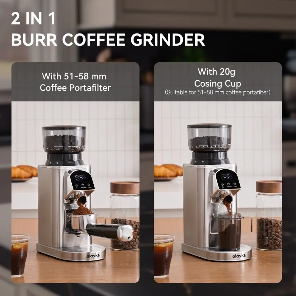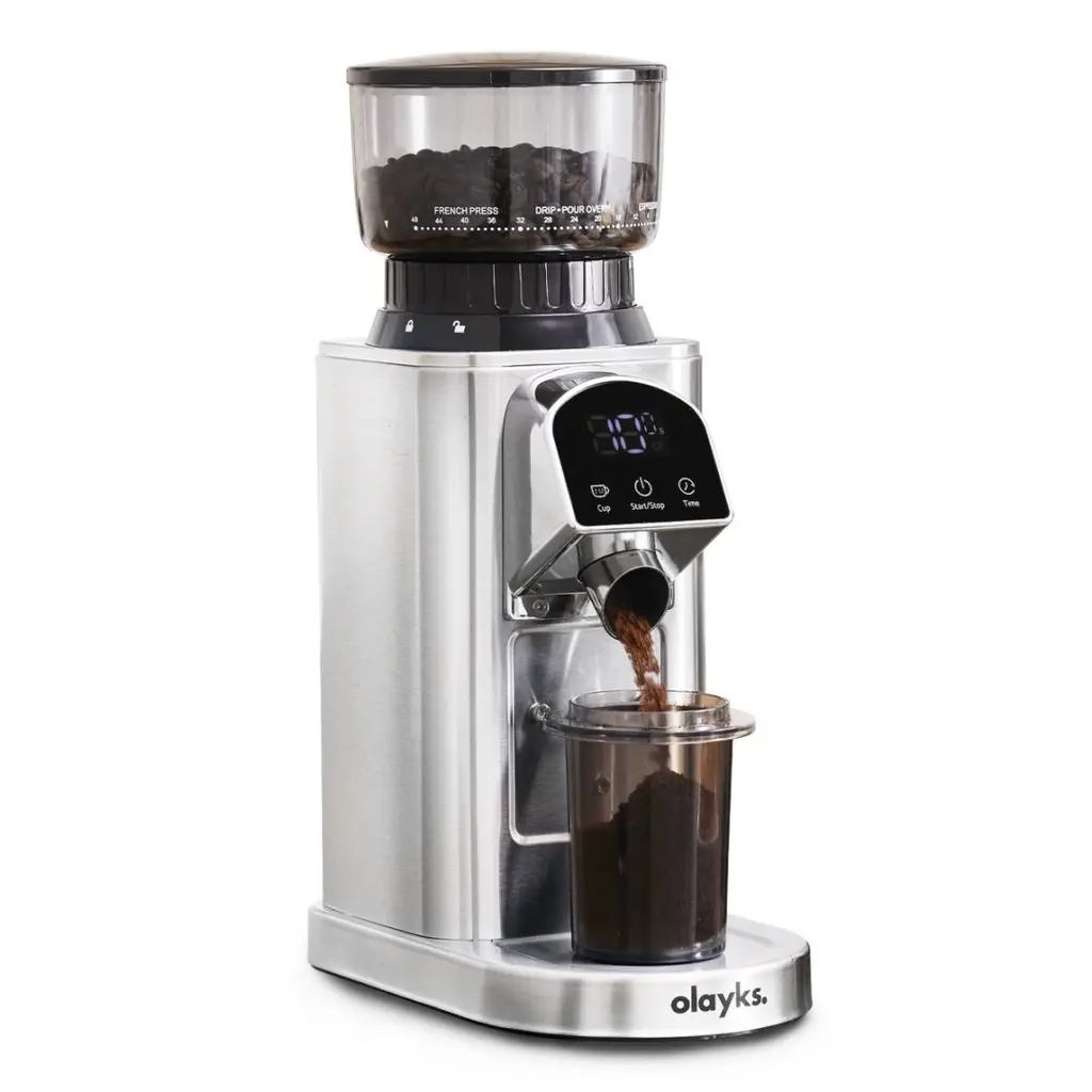 Silver Electric Coffee Bean Grinder For Home Use With Precise Grinding And Led Control Panela And Detachable Funnel Stand - Silver