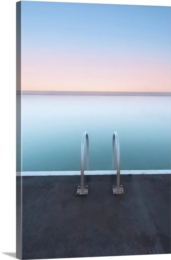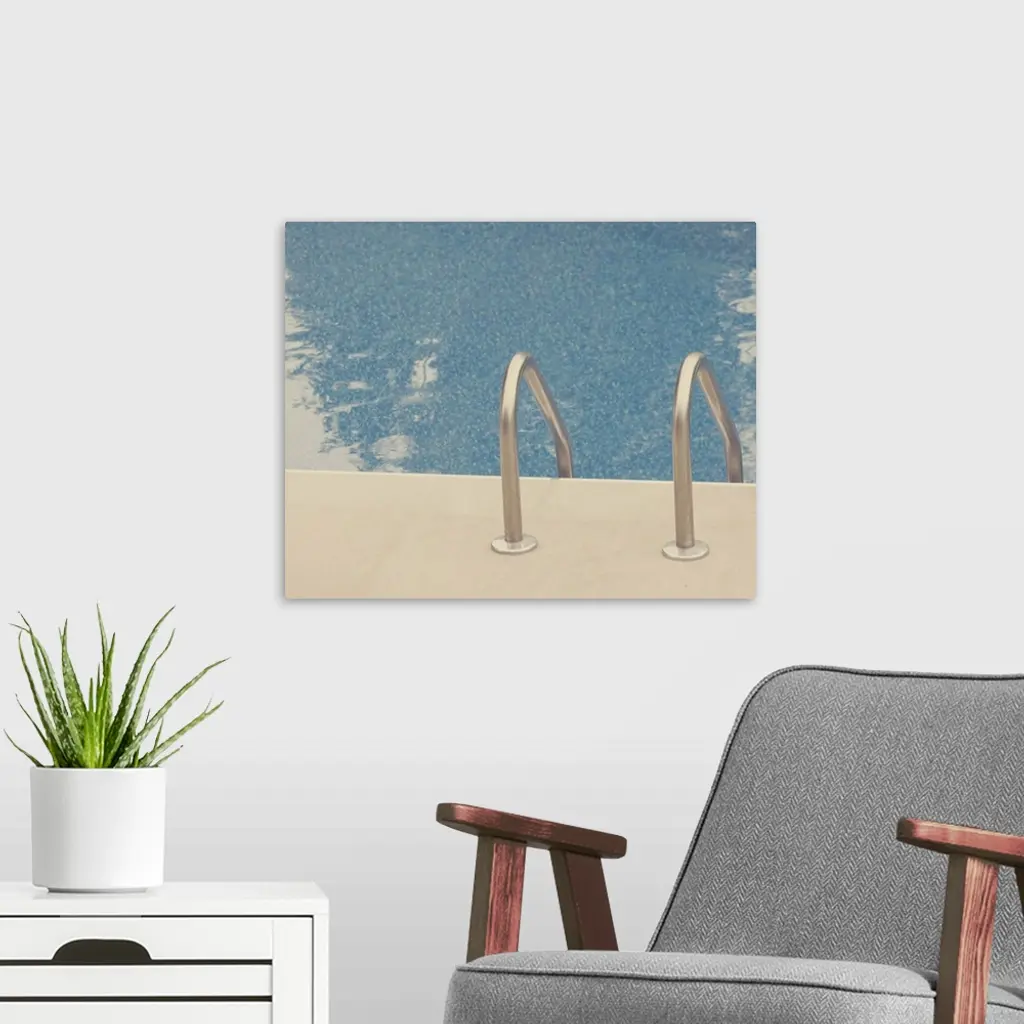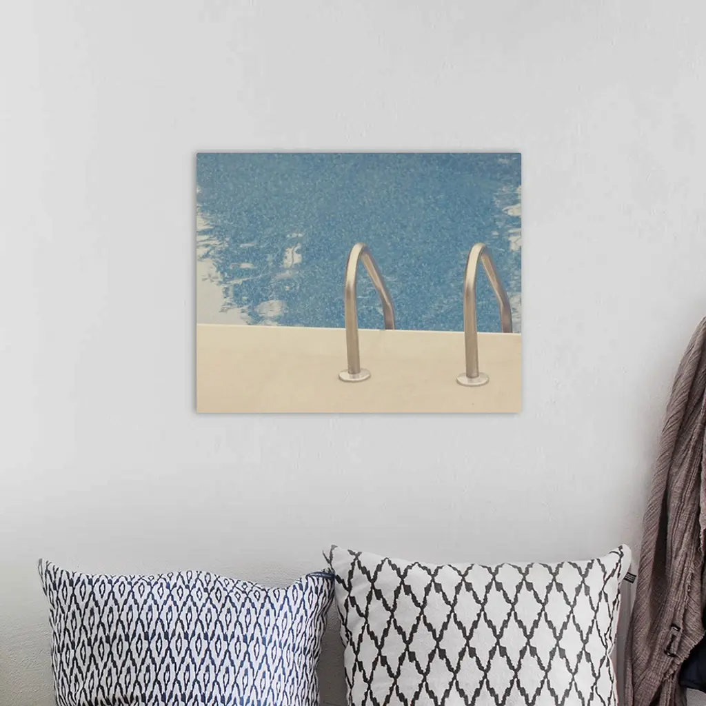 Silver ladder going into blue pool. wall art for home and office decor. Discover canvas art prints, photos, mural, big canvas art and framed wall art in GreatBigCanvas.com's varied collections.