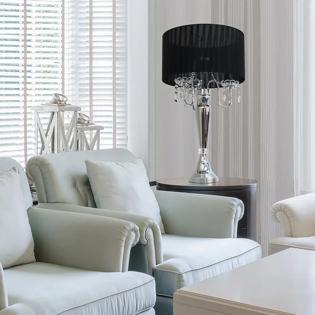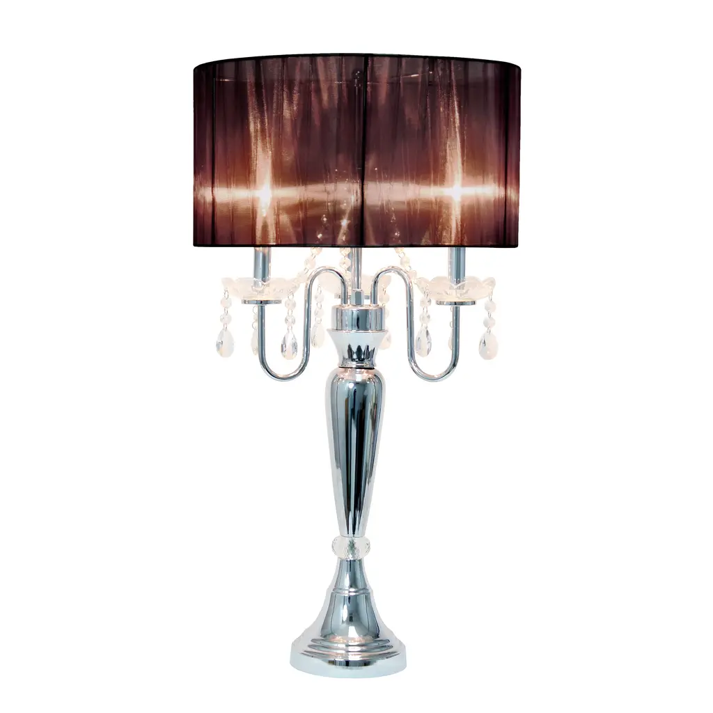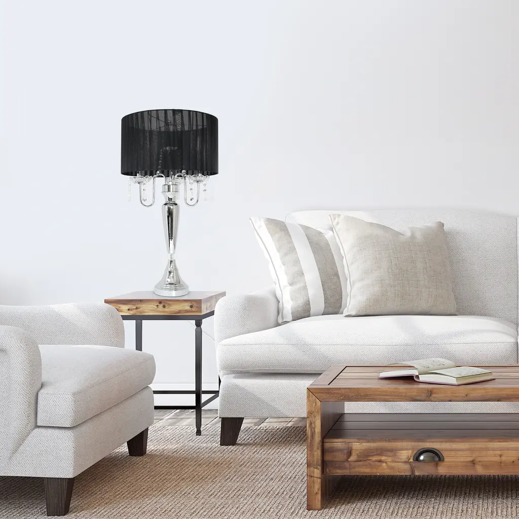 Silver Orchid Bacall Hanging Crystals Sheer Shade Table Lamp - Black