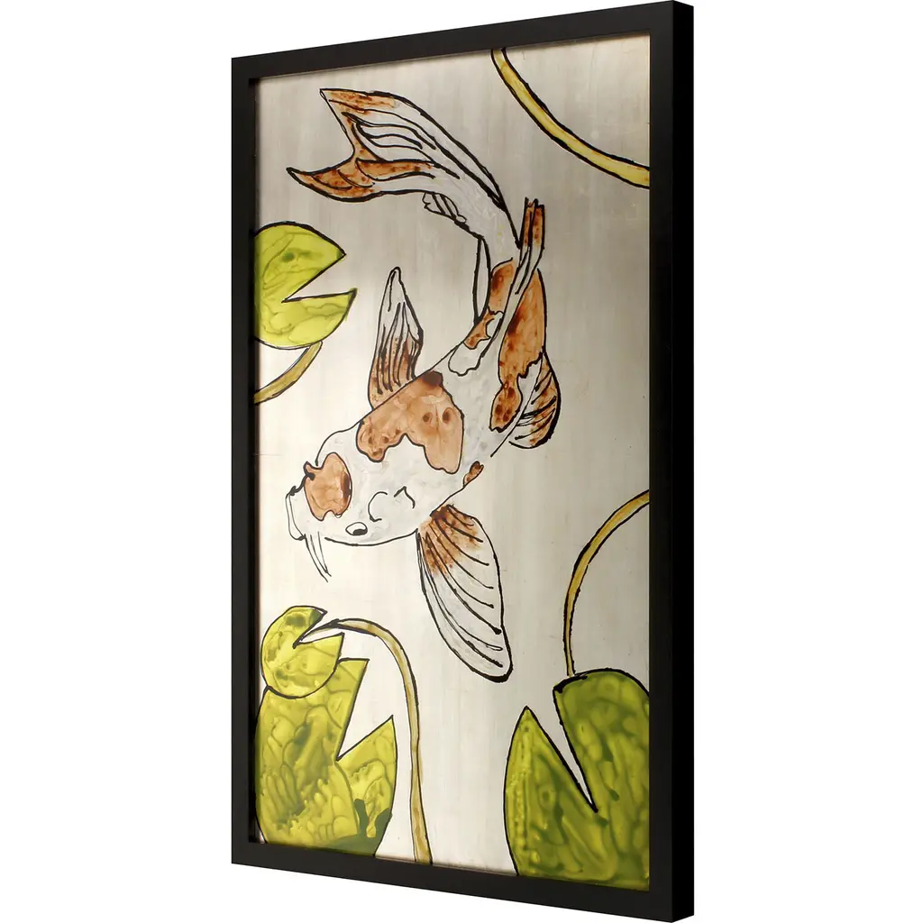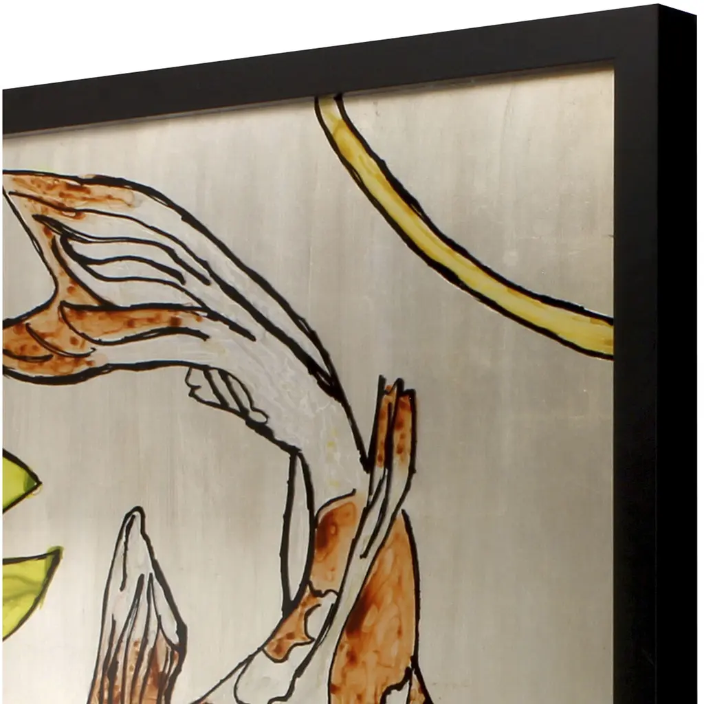 Exclusive reverse hand painted on acrylic. Framed in a black matte wood shadow box style moulding.