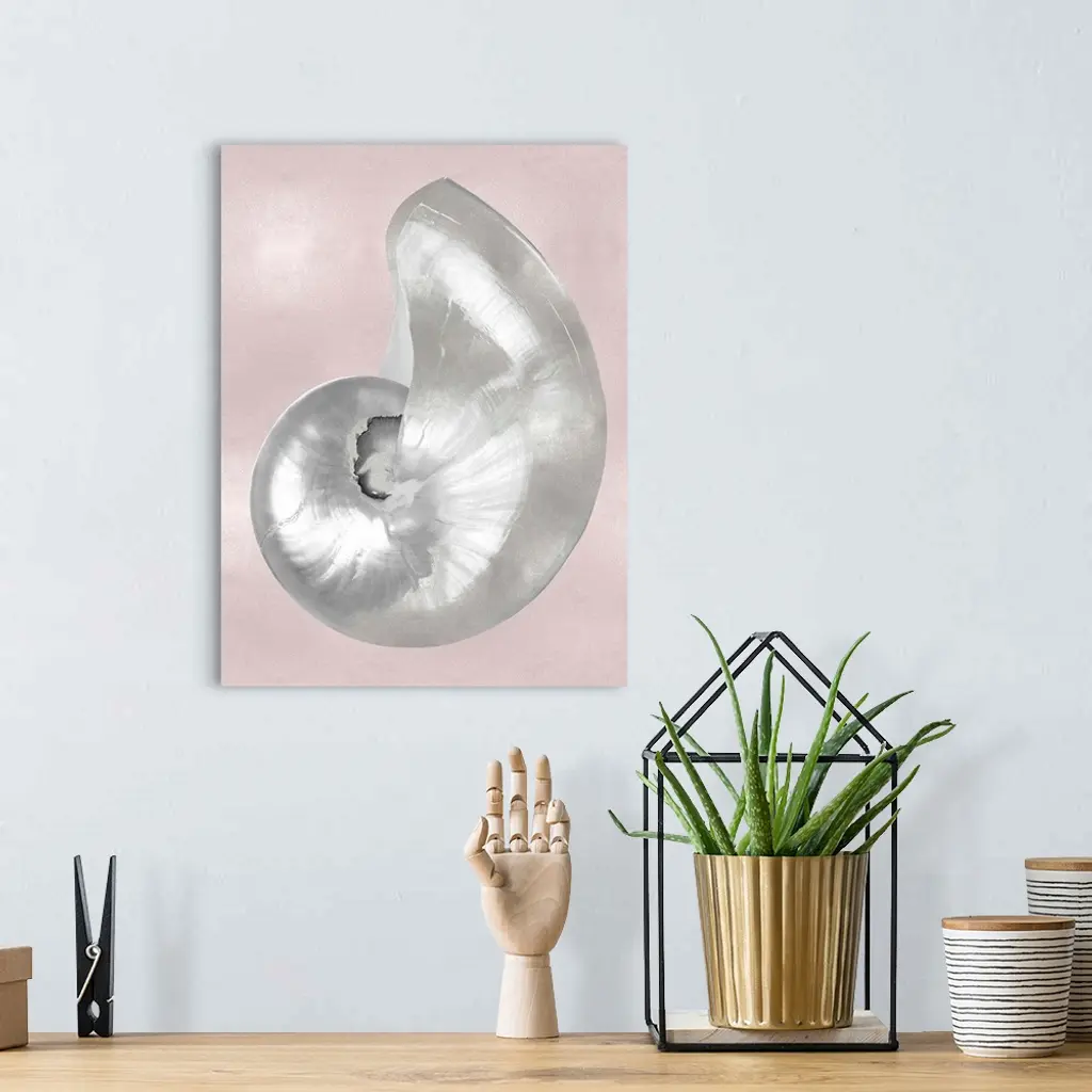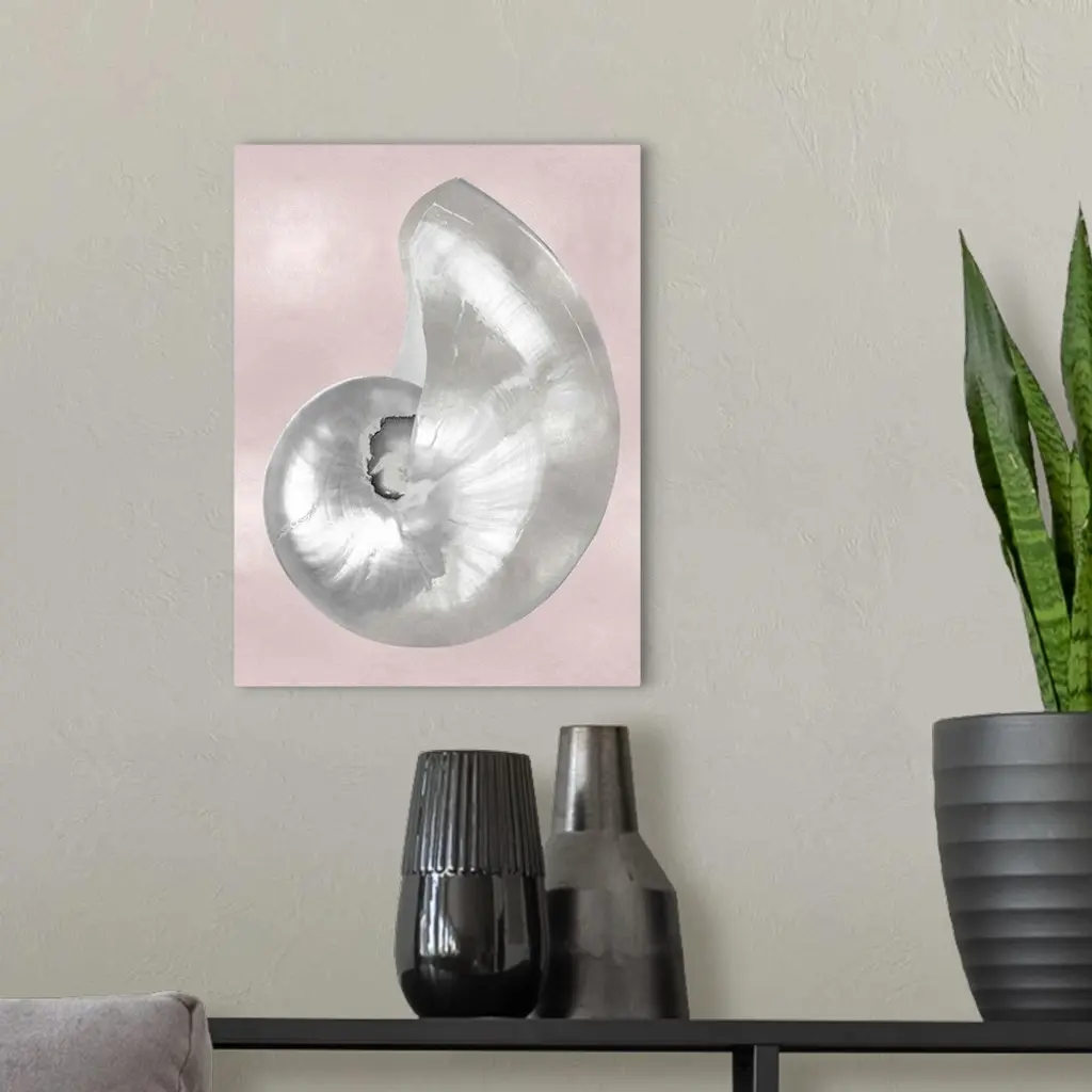 Silver Shell on Pink Blush I wall art for home and office decor. Discover canvas art prints, photos, mural, big canvas art and framed wall art in GreatBigCanvas.com's varied collections.