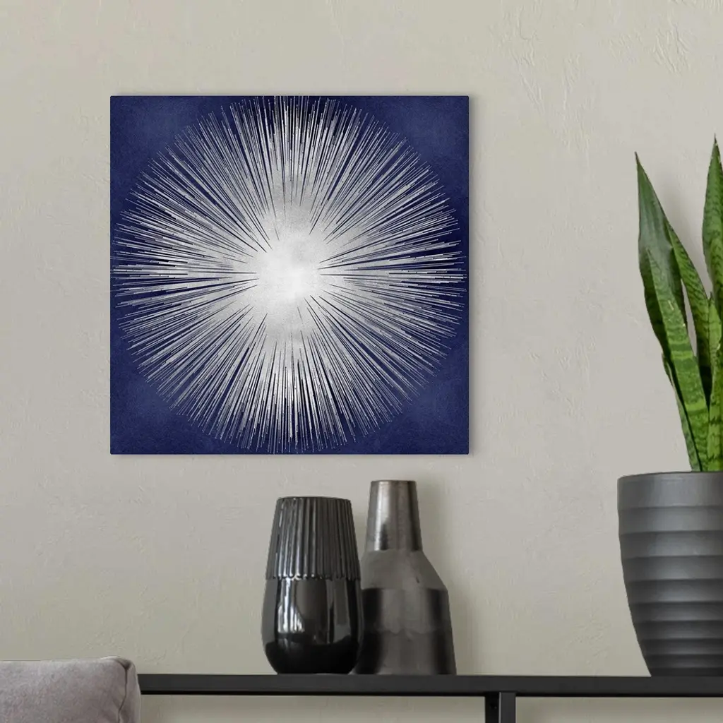 Silver Sunburst On Blue I