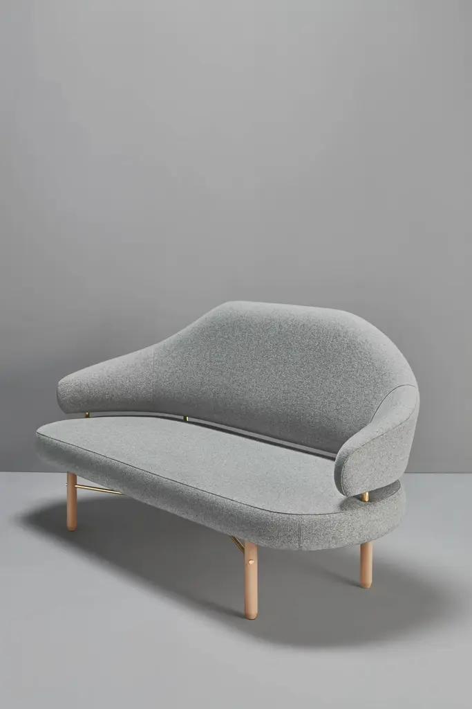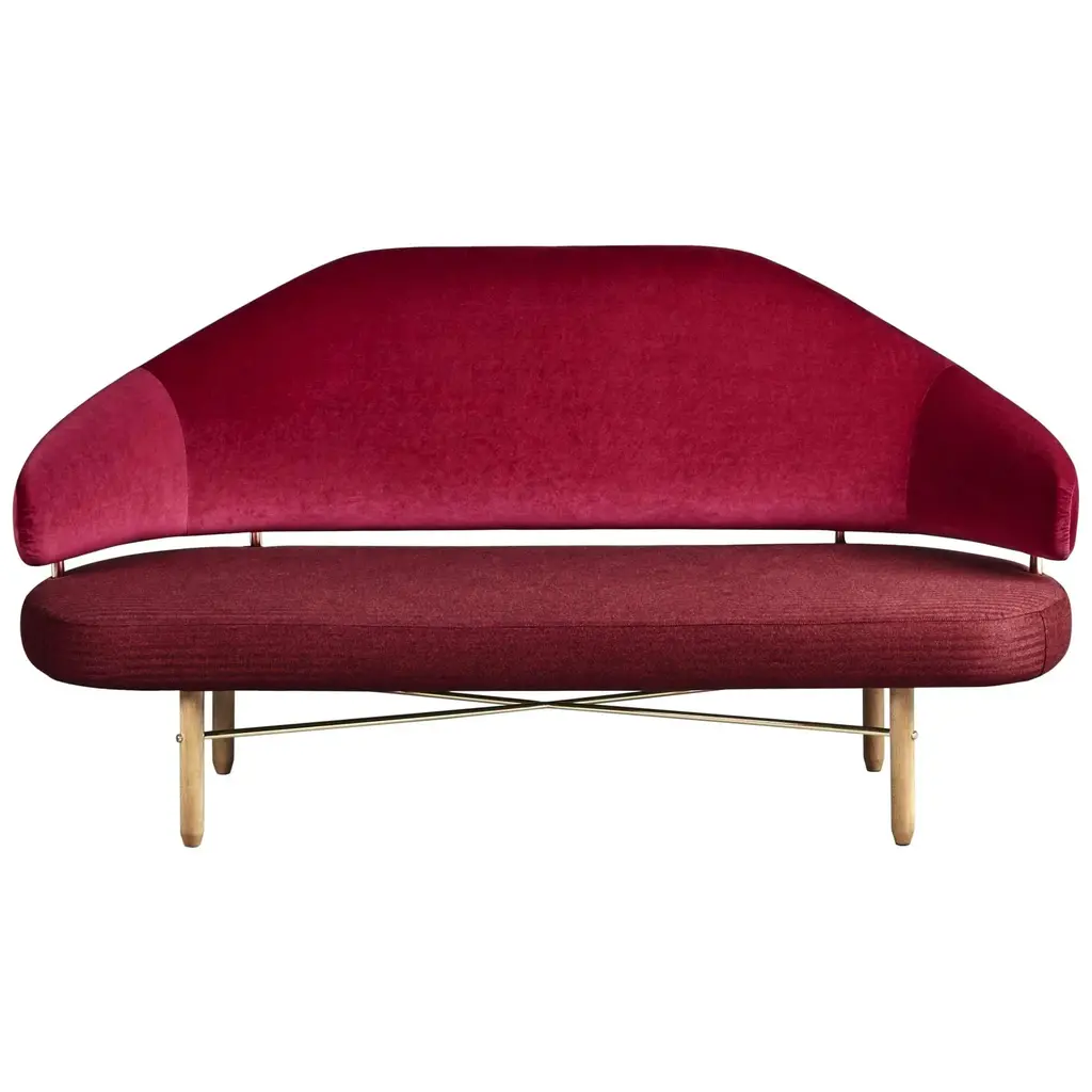 Simone Sofa, Sputnik Studio, Design Homage to Nina Simone Dimensions: 95 x 182 x 76 cm Materials: Handmade, pinewood structure reinforced with plywood. Seat polyurethane 3542. Backrest polyurethane HR22. Golden iron metallic parts. Beechwood legs. Elegant and flirty, Simone catches the attention of every person in the room, with its back suspended over the seat letting us see the beautiful gap between both parts and the golden metal bars that separate them. Its light structure, its sensual curves reminds us of the elegance of a grand piano. No wonder why it borrows its name from the outstanding singer and pianist Nina Simone. Sputnik is a multidisciplinary design studio based in Valencia. (Spain). It was born motivated by a constant and restlessness desire to create innovative and functional products, providing each design with a different vision on everyday objects. This piece is attributed to the mentioned designer/maker. It has no attribution mark and no official proof of authenticity, however it is well documented in design history. I take full responsibility for any authenticity issues arising from misattribution
