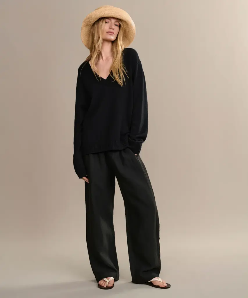 Simone V-Neck Black Our refined take on an everyday layer, fashioned from a luxe new blend of fine cotton and merino. Naturally breathable with a cool touch and a soft, relaxed drape—it’s the kind of piece that looks and feels like pure luxury.