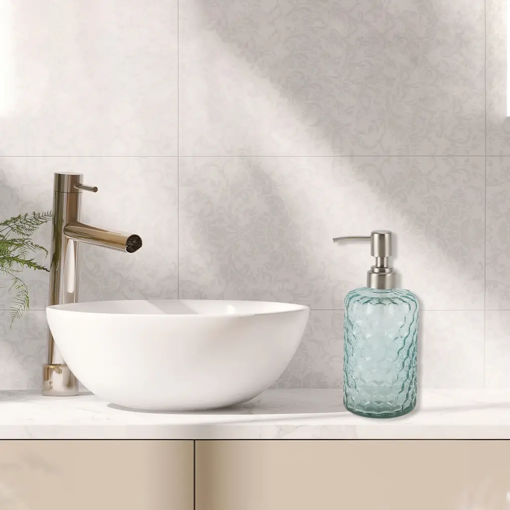 Simple Cylindrical Soap Pump Dispenser For Bath 500ml 1 Pcs - Green Silver Tone