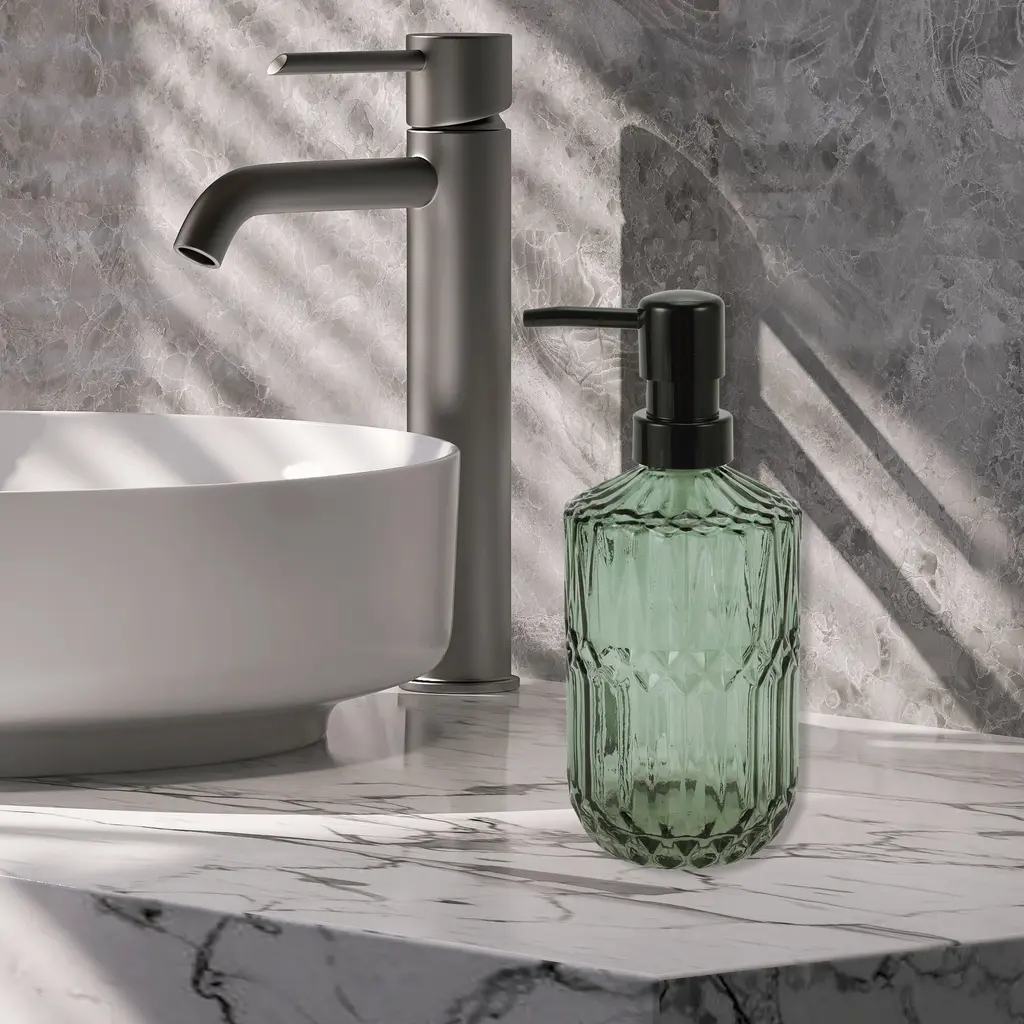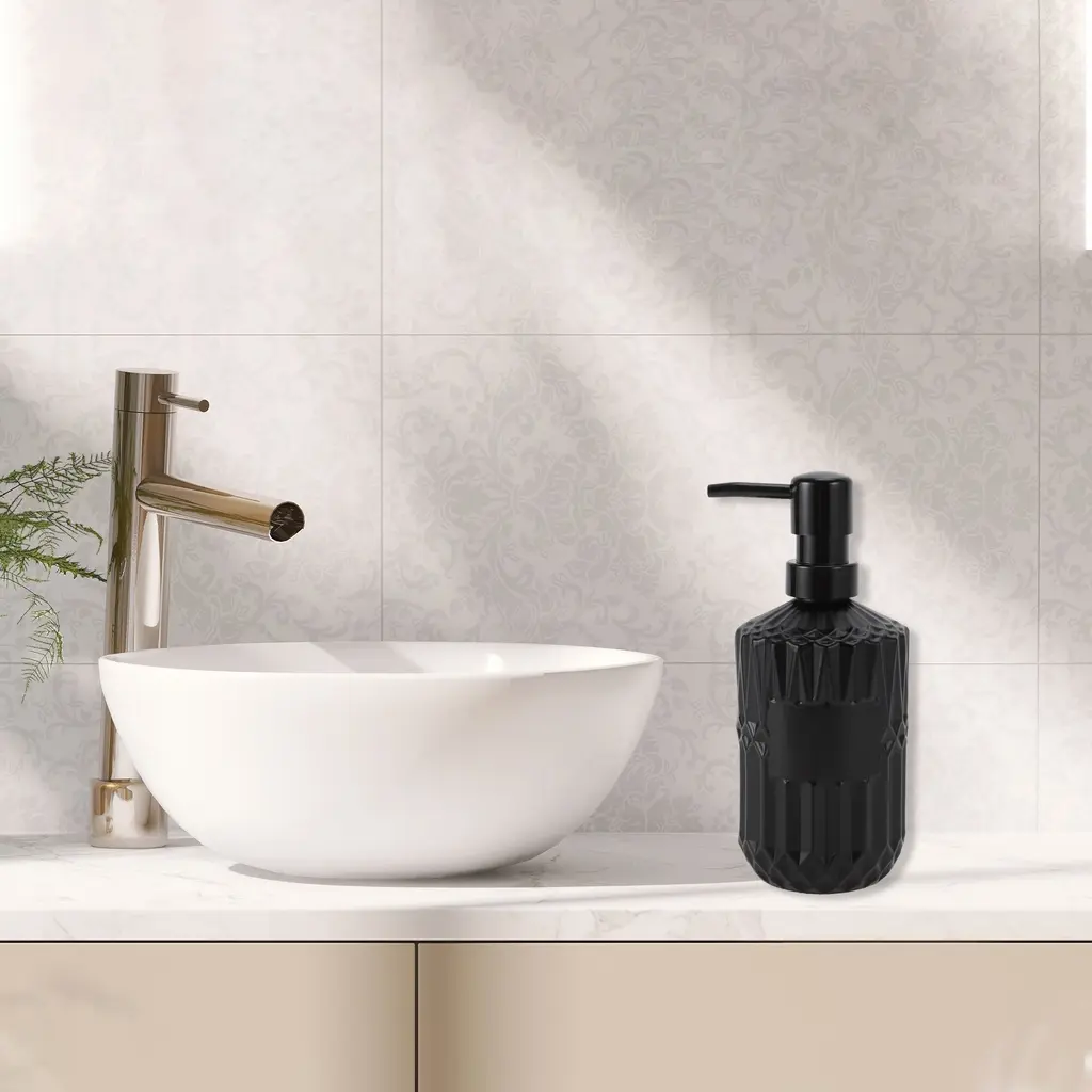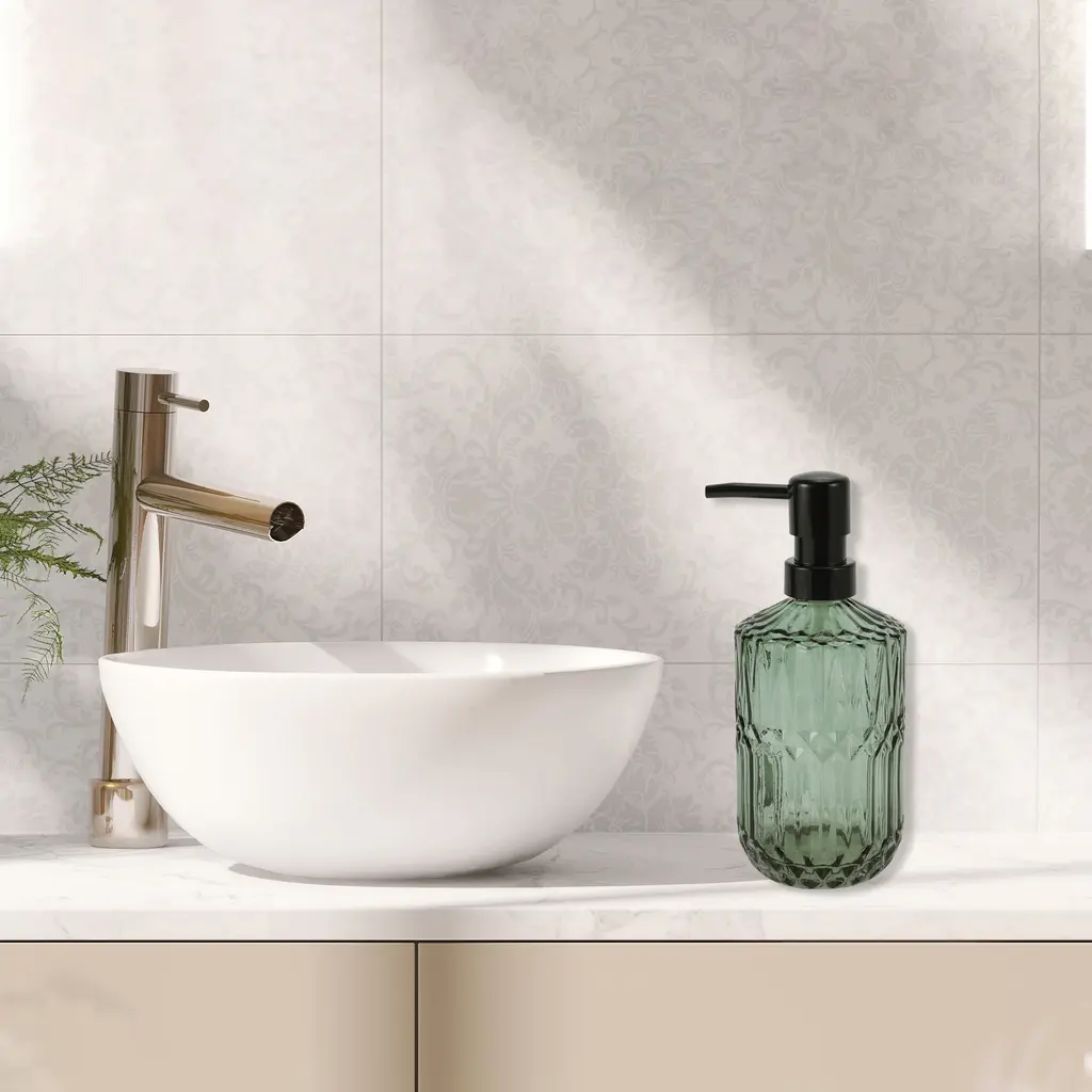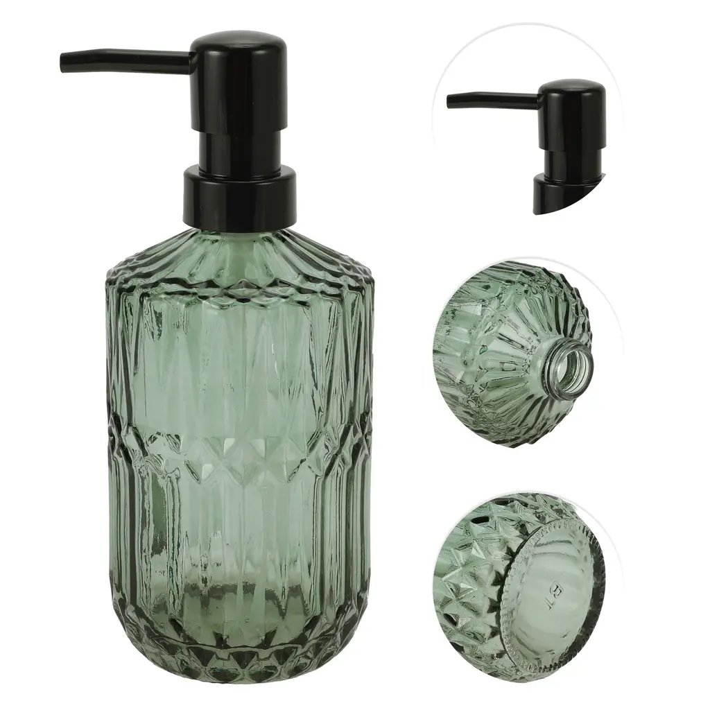 1 Pc Simple Cylindrical Soap Pump Dispenser for Bathroom 450ml Green BlackLiquid soap dispensers are a more stylish home decor for kitchen and bathroom countertops.Stylish and modern design, simple yet elegant, adding a touch of sophistication to everyday essentials.Easy to pump, falls well on hands when pressed and does not spray on clothes.Color: Green, Black, Material: Glass, Size: 18.7x7.7cm / 7.36"x3.03"(H*D)Package Included: 1 Pc Soap Pump Dispenser.